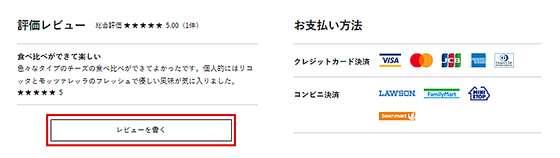 「評価レビュー」の「レビューを書く」ボタンをクリック。