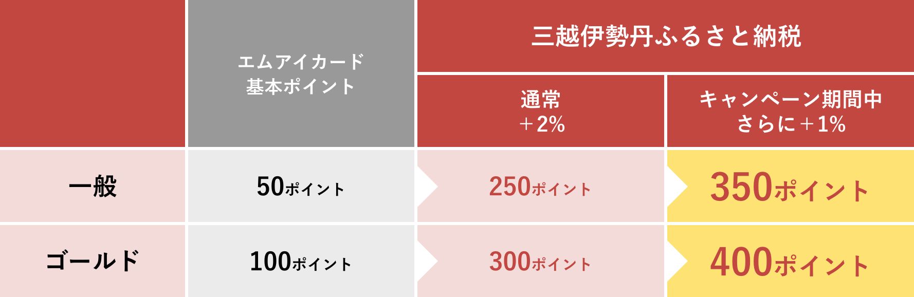 ・『三越伊勢丹ふるさと納税』で寄附をすると、上記の基本ポイントに2%を加えたポイントが貯まります。