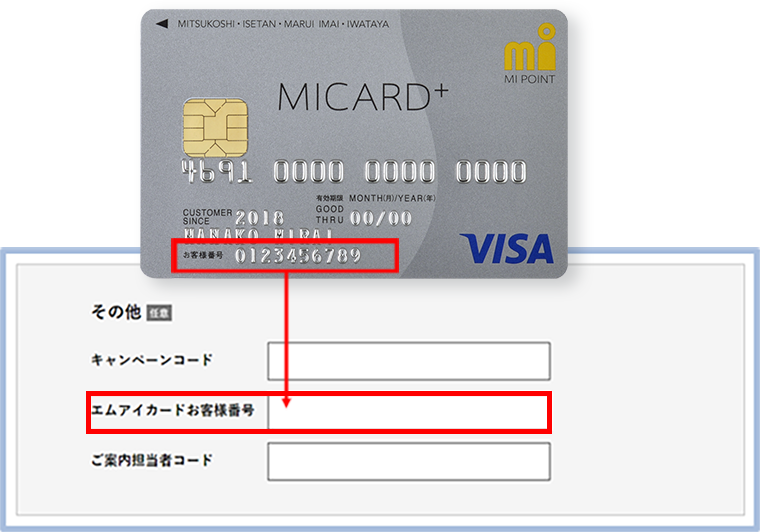 寄附申し込みフォーム内の「エムアイカードお客様番号」欄に、エムアイカードに記載の10桁の「お客様番号」をご記入ください。