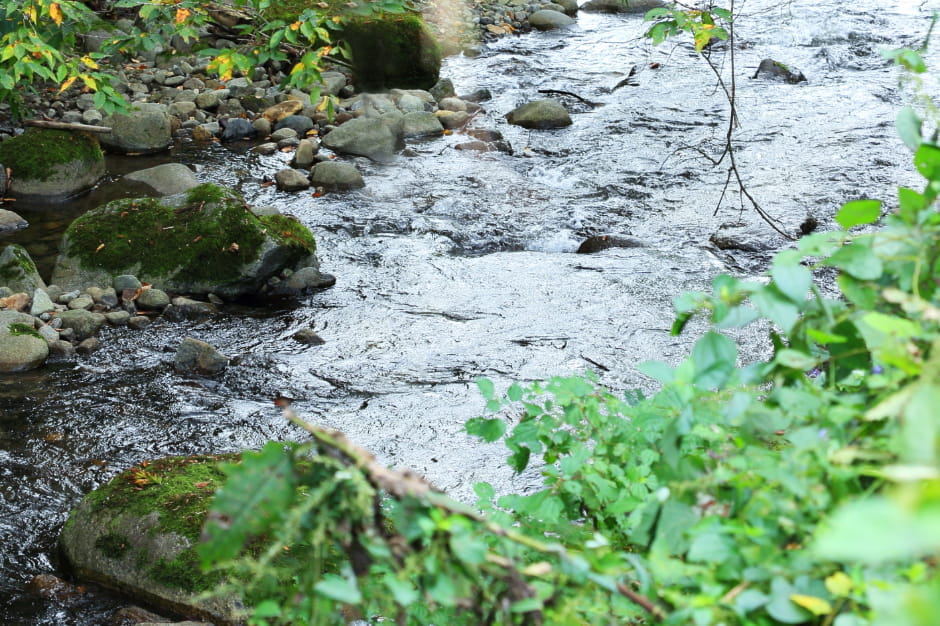 そんな近正さんが農業を始めた場所が奥阿賀。よく知らないまま来たものの、この地が中山間地だからこそ、大きい気温差と冷たい清流においしい米が育まれると実感します。