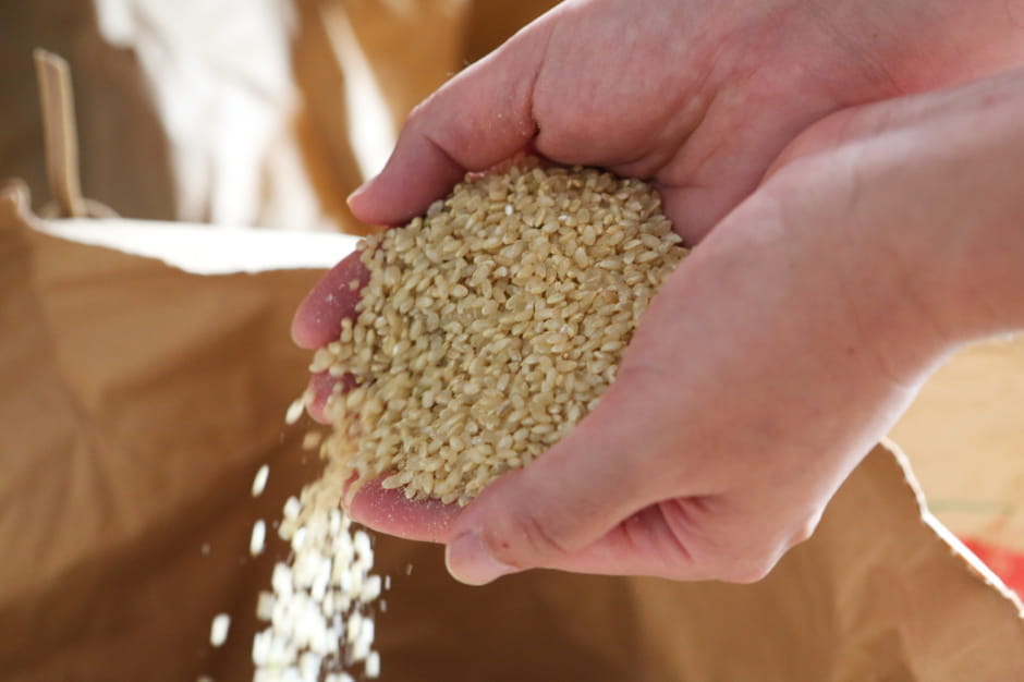 「玄米保管が当たり前だと思っていたので、地元の農家さんが自家用にモミで保管しているのが不思議で尋ねたことがあるんです。そうしたら、“りんごを冷蔵庫で保存する時、皮はむかないでしょ?それと同じだよ”と言われて腑に落ちました。食べる部分が空気に触れてしまうと、酸化が進んで味が落ちていきます。表面もパサつきますよね?米も同じで、モミ殻が米のフレッシュなおいしさをキープしてくれています。農家さん自身は何がおいしいか知っています。でも、大量出荷するために戦後作られた規定がいつの間にかに浸透して、おいしさを二の次にすることに疑問を持つ人が少なくなっていったのでしょう」。