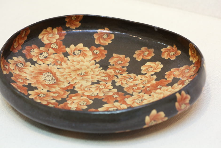 「筆で描いたみたいでしょう? でも、土を成形して接着しているから、ゆらぎが線に表れています。日本人は定規できっちり引いたような線も好むけれど、こうしたゆらぎに感情を動かされる人も多くて、つくづく日本人は奥深いなと感じます」。