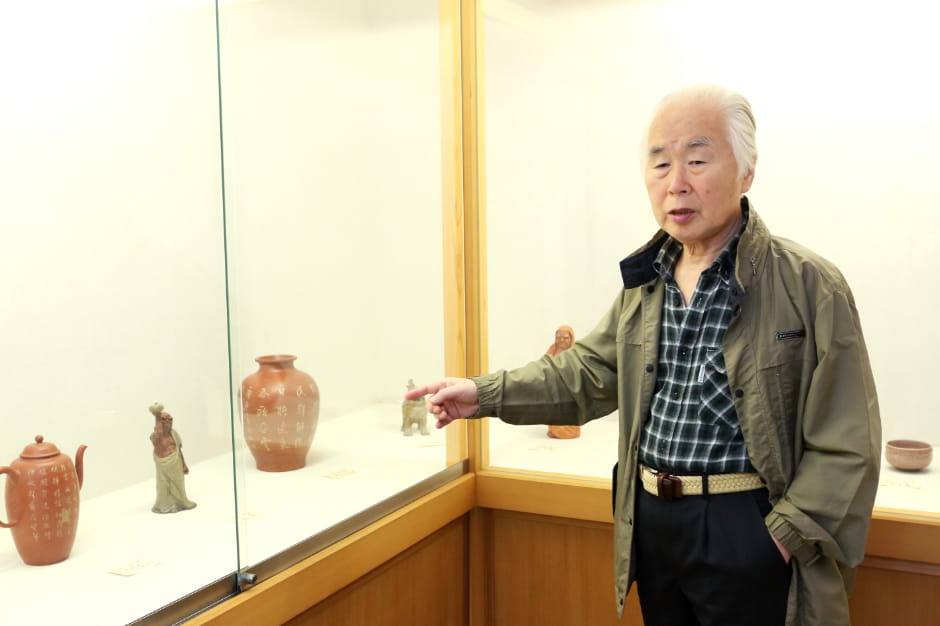 「焼きものをやっていた先祖がお茶道具を作るようになり、献上品でもあるから稀少な無名異を使って付加価値を付けたのでは。稀少な薬だからありがたみも増し、これでお茶を飲むと無名異の成分が溶け出すのではと言う人もいたようです」。