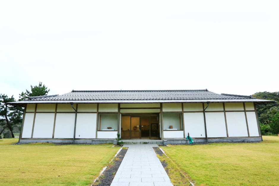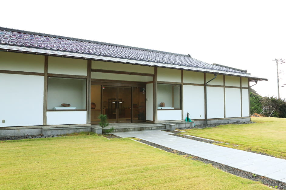 海岸からほど近い小高い丘にある“伊藤赤水 作品館”。こちらでは、5代赤水さんの作品はもちろん、歴代赤水の代表作も鑑賞できます。4代までの作品をまとめた展示コーナーの前で、5代赤水さんは柔らかい笑顔になりました。