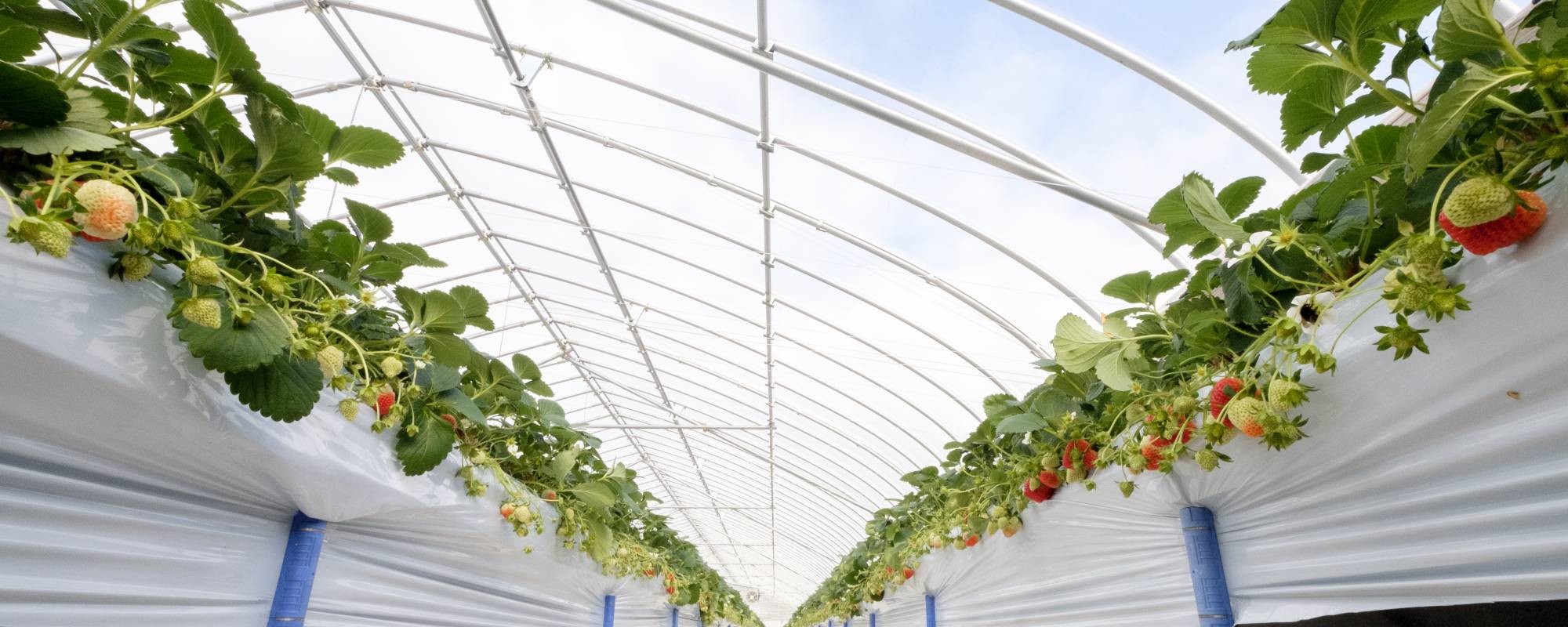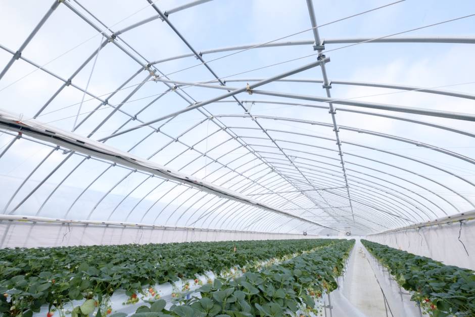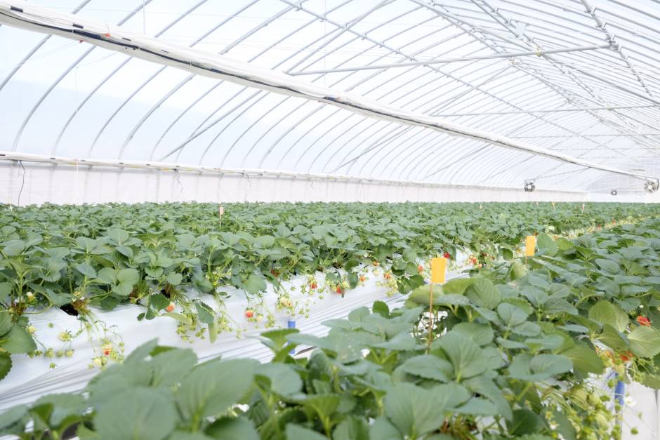 極力、自然な環境に近づけたハウス内でのいちご栽培