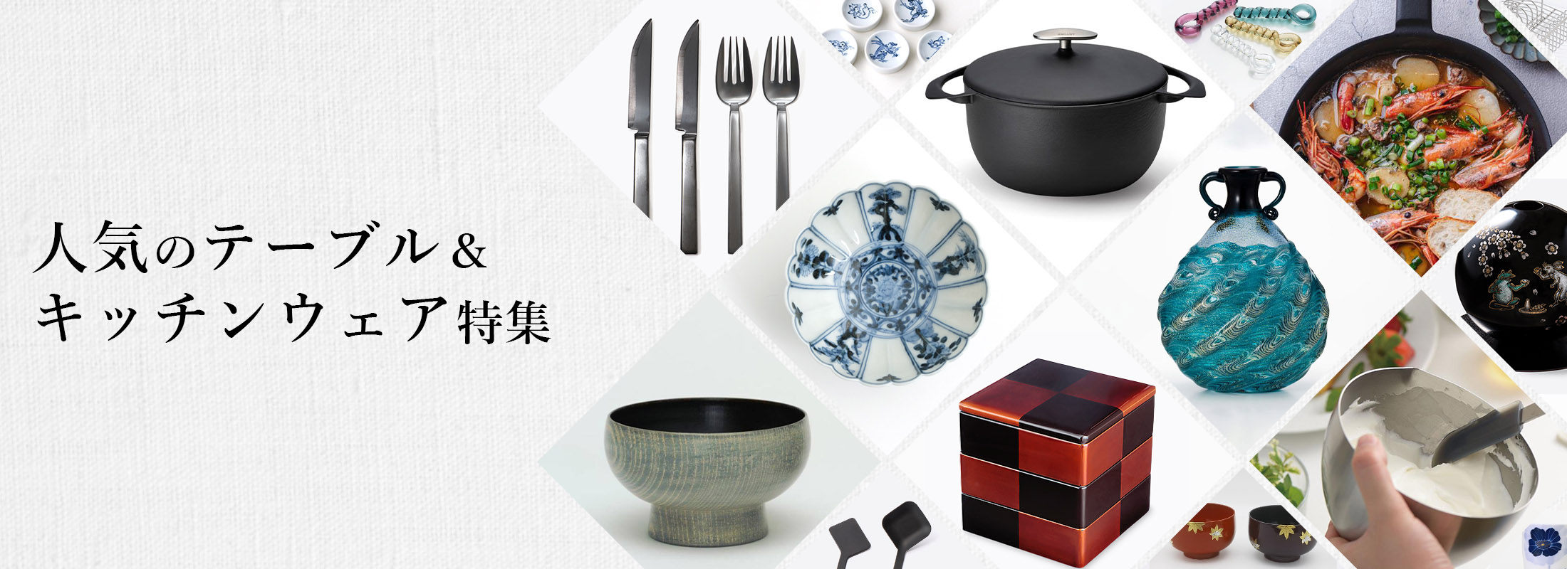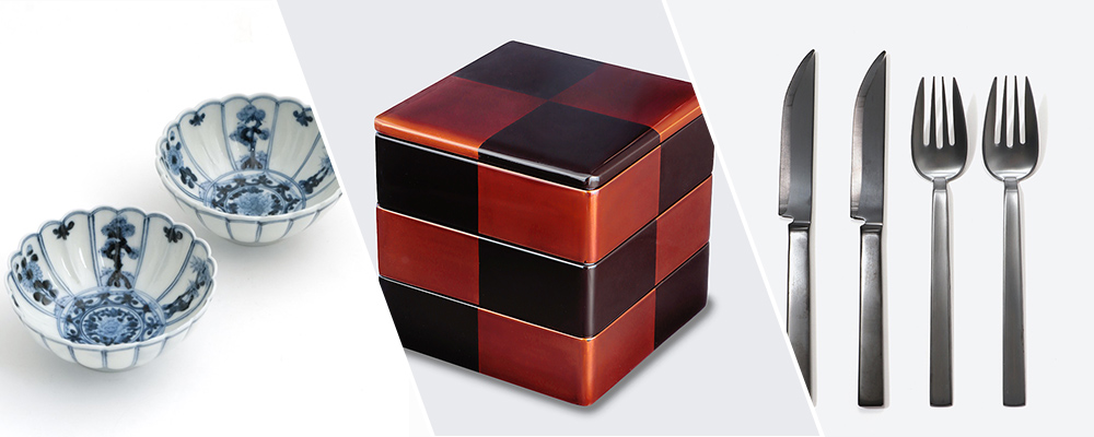 伝統の技が息づく陶磁器や漆器、使い勝手にこだわったカトラリー、毎日の料理が映えるモダンな器など、