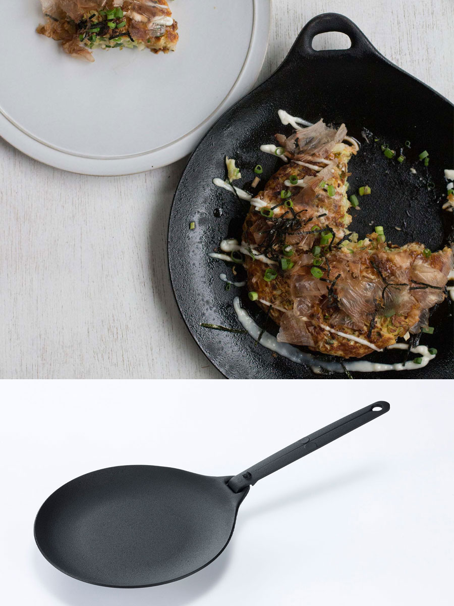 アツアツの鉄板を移動するときには取り外し式のハンドルを使います。
