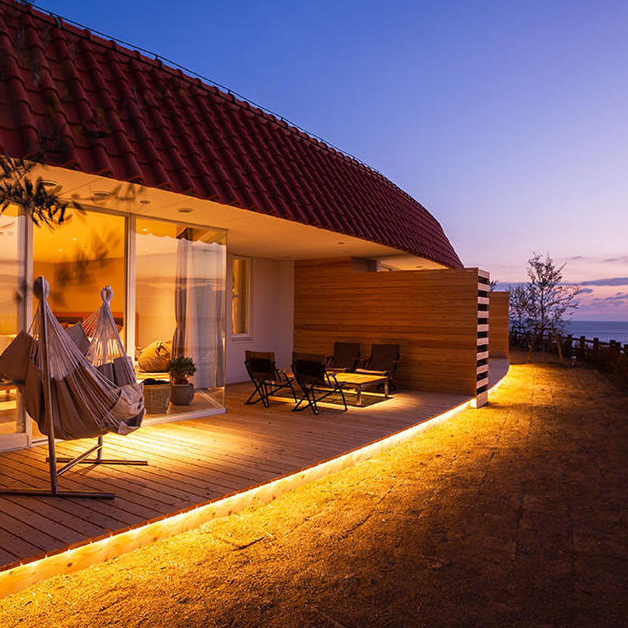 「海遊び」・「野遊び」、「贅沢は、外にある」をコンセプトに小松島の自然を満喫できるお宿。海に面したデッキでゆっくりと流れる時間を楽しむのも、このお宿の醍醐味の一つ。