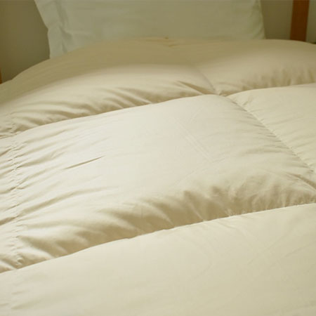 オールシーズン快適に。合掛け+肌掛け(ダウンケット)二枚合わせの羽毛ふとんは、室温に合わせて使い分けられる優れもの