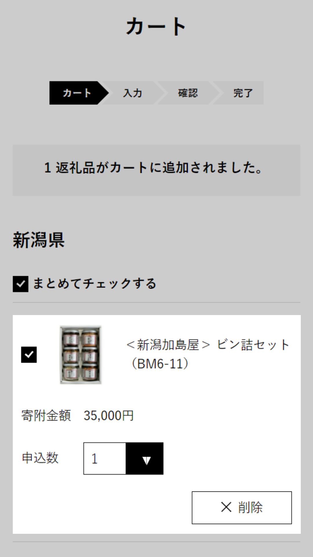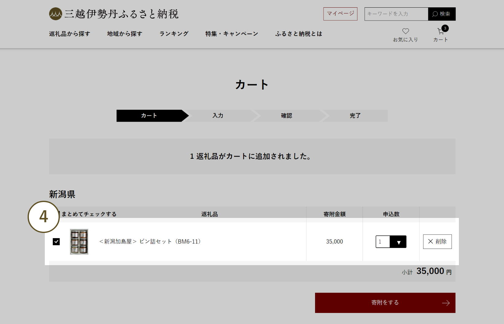 - 4 カートに返礼品が追加されます。