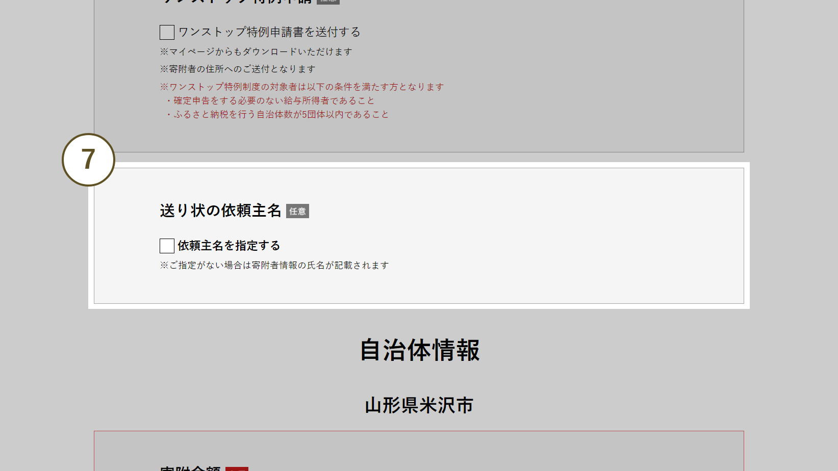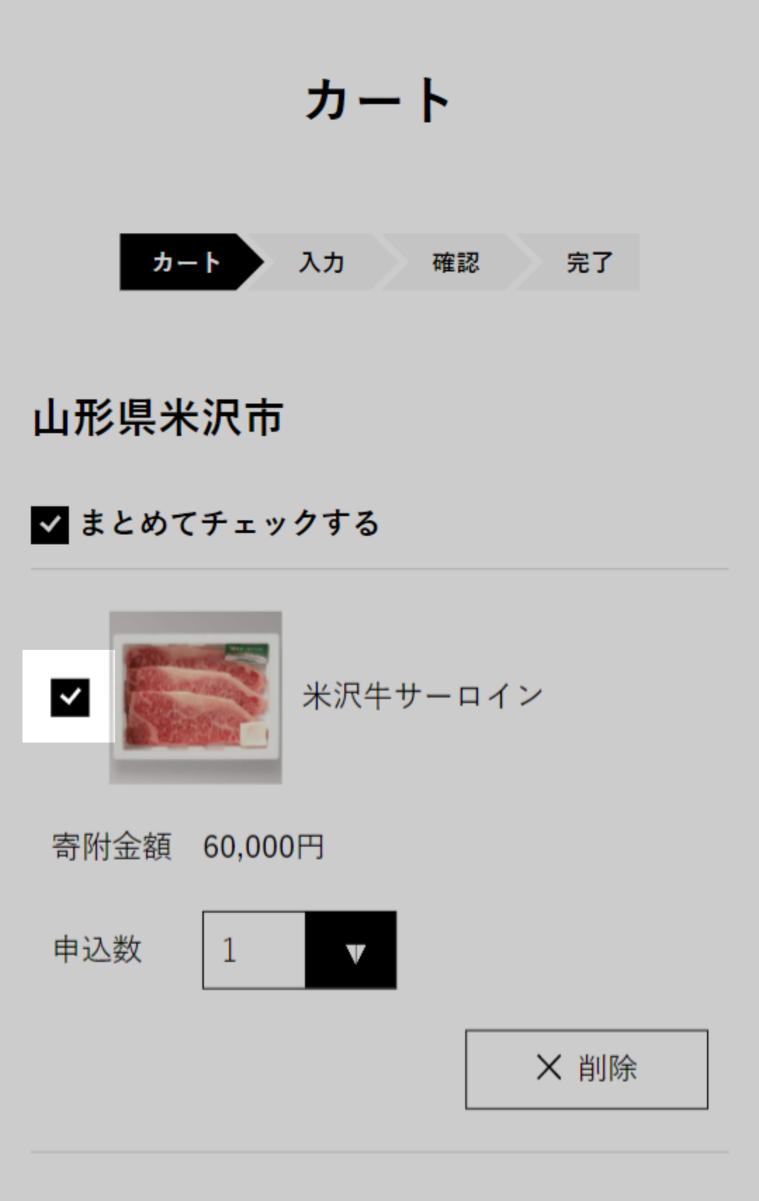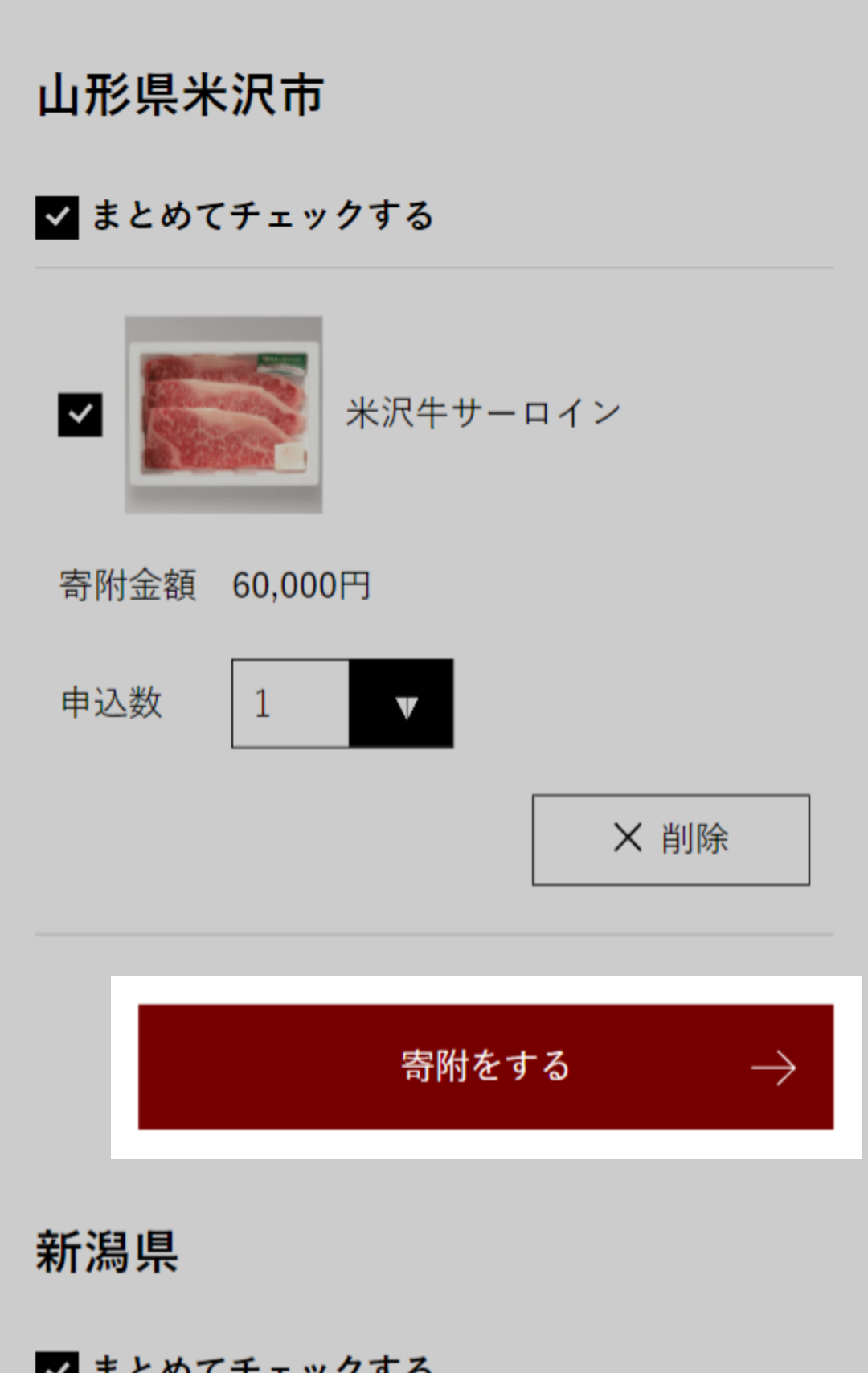 寄附申し込み希望の返礼品にチェックがついていることを確認してください。