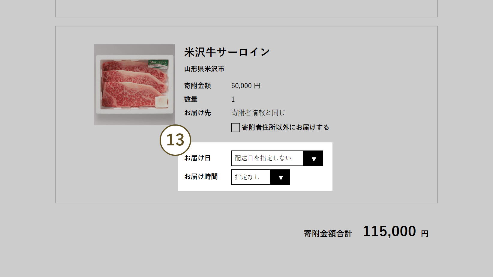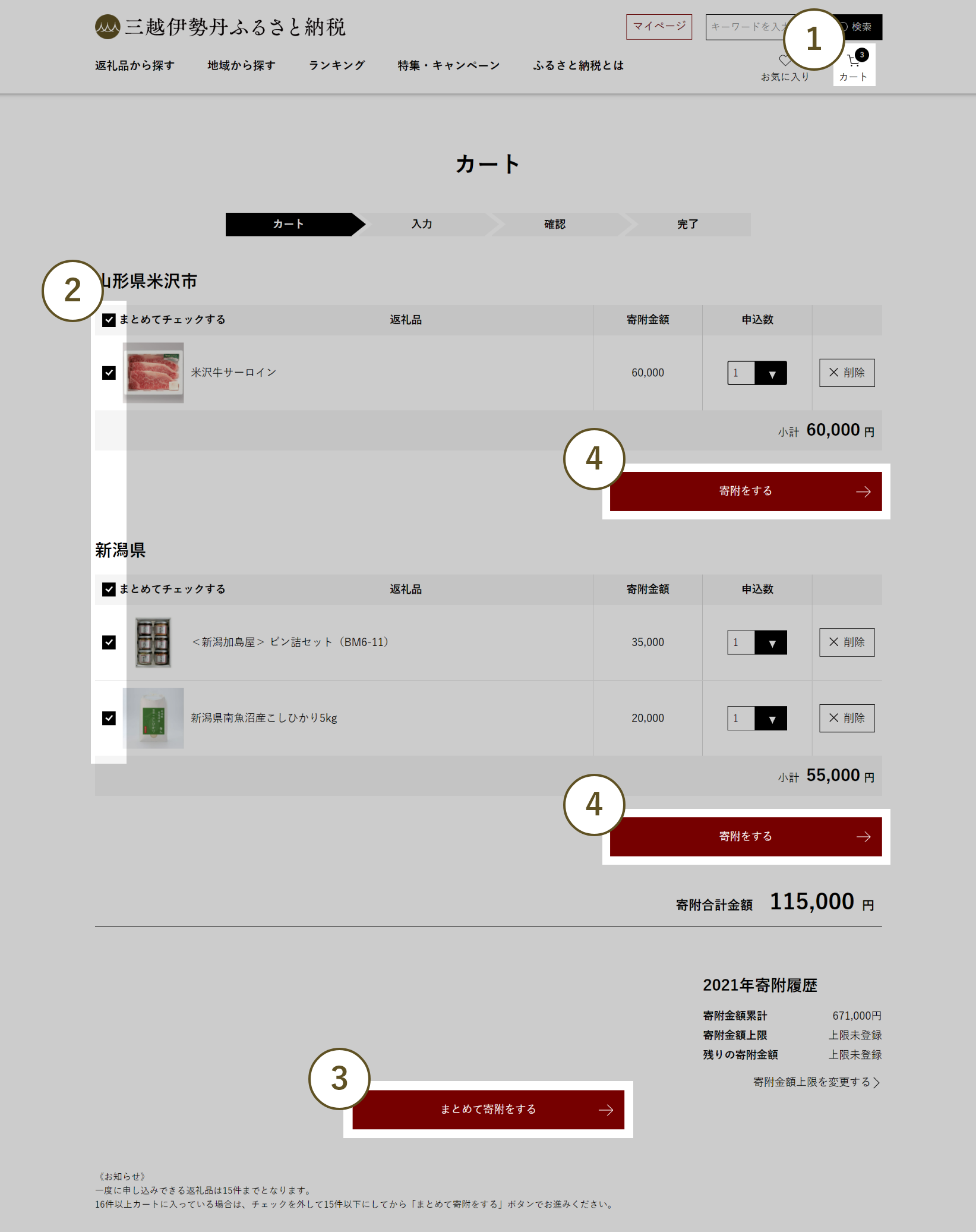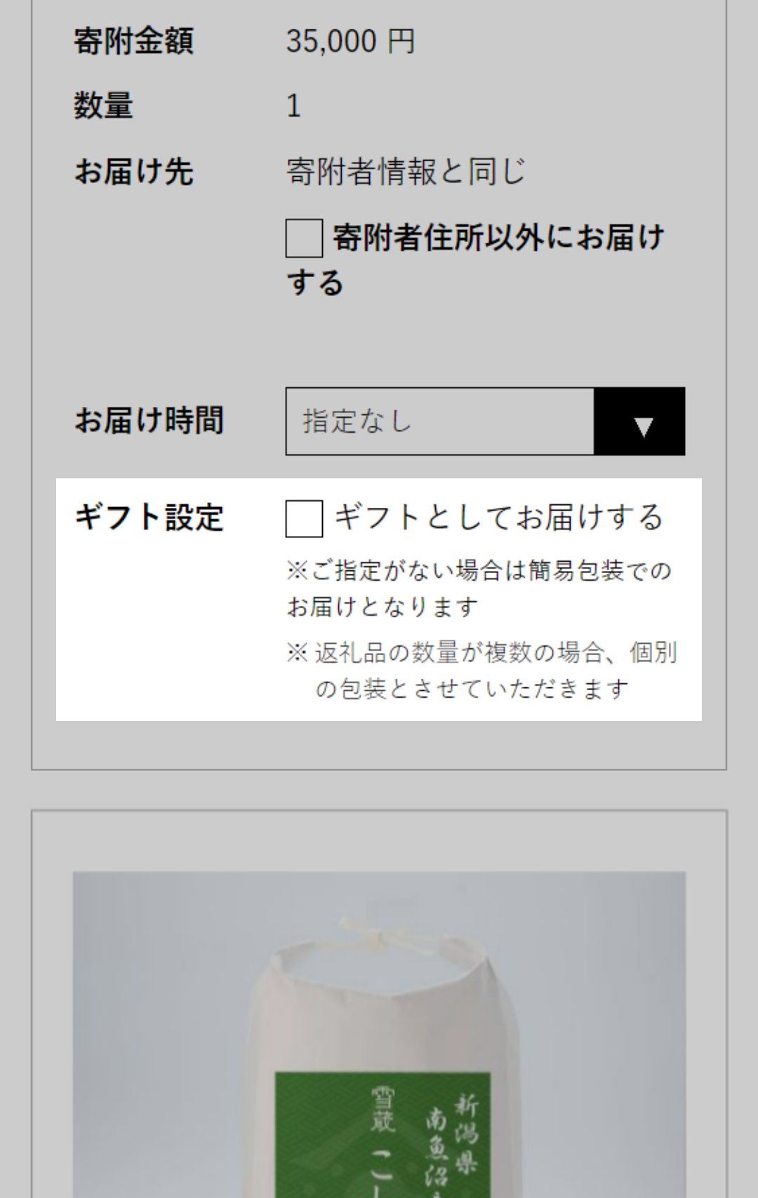 寄附申し込み希望の返礼品にチェックがついていることを確認してください。