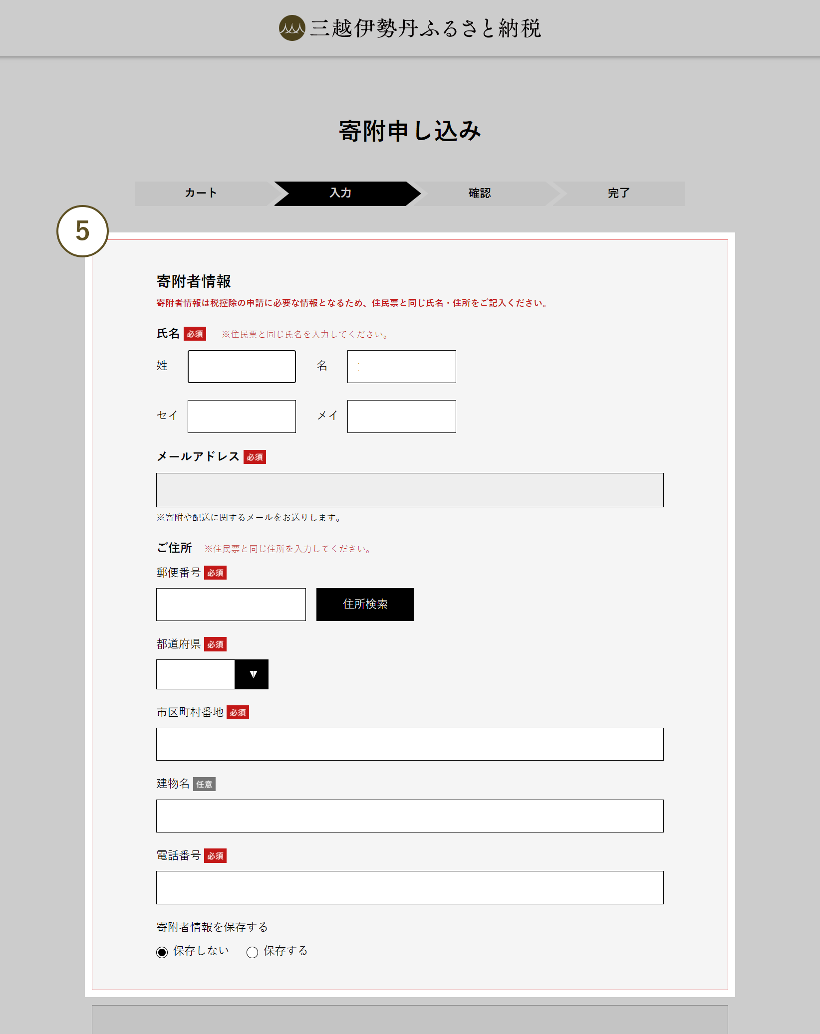 - 5 住民票に記載されている内容と同じ情報をご入力ください。