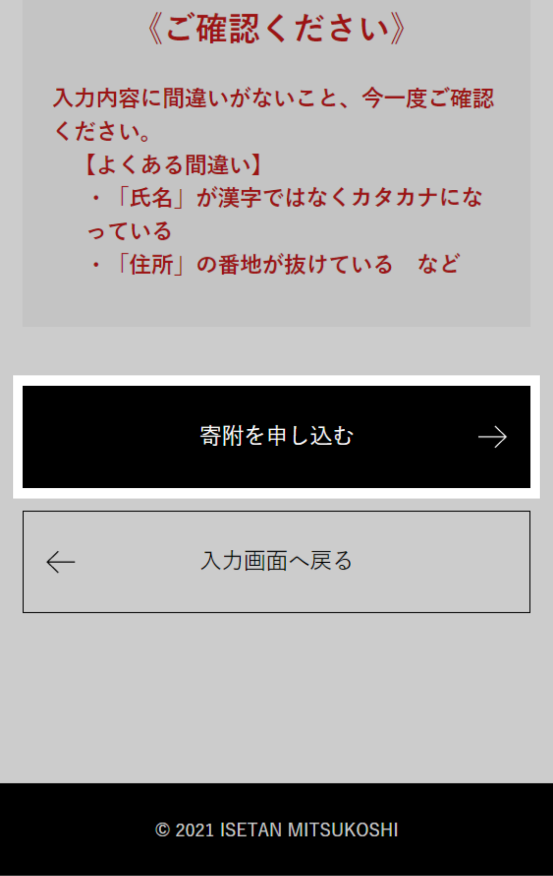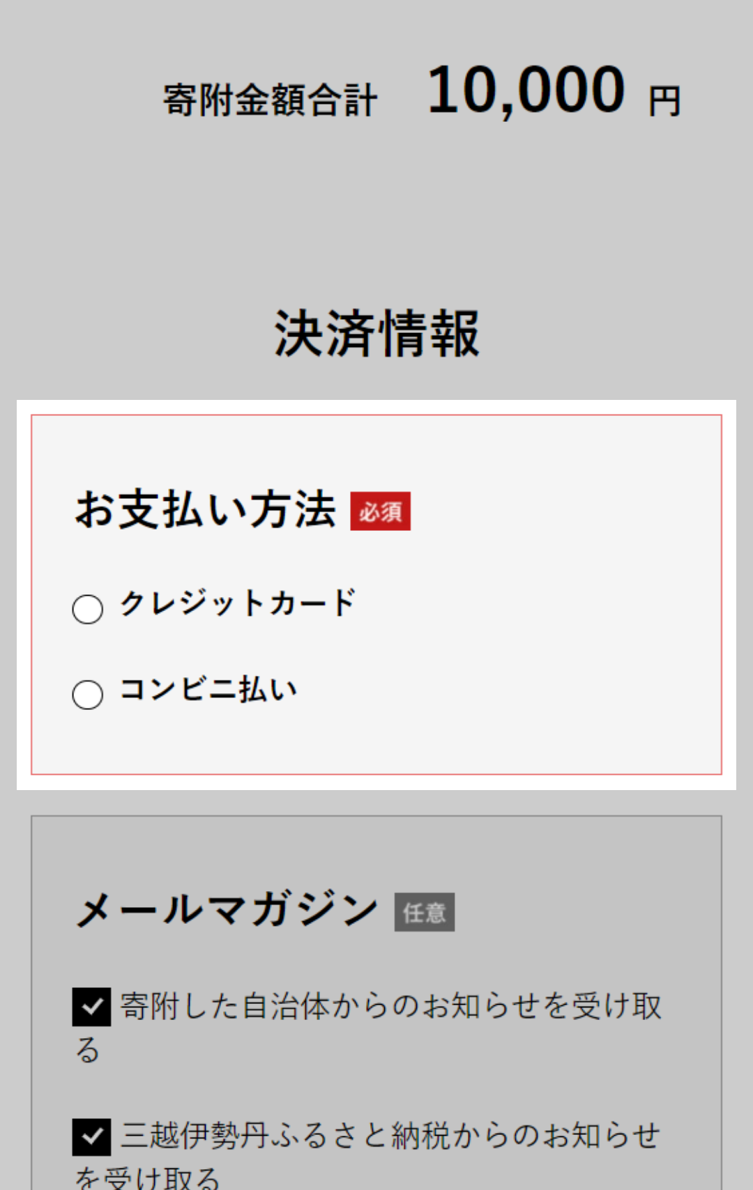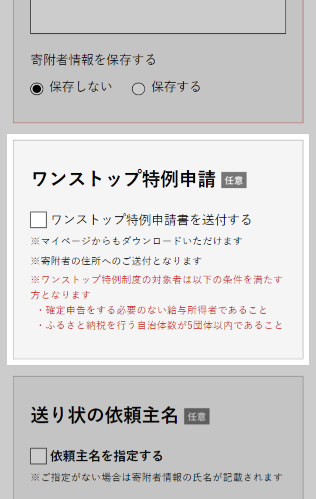 ※チェックが外れていると寄附申し込みされません。