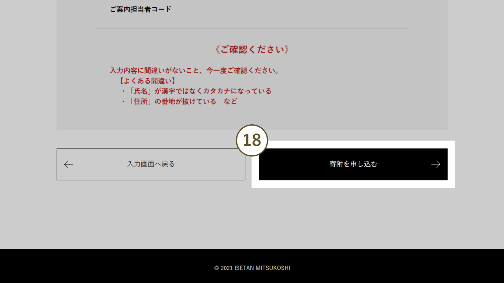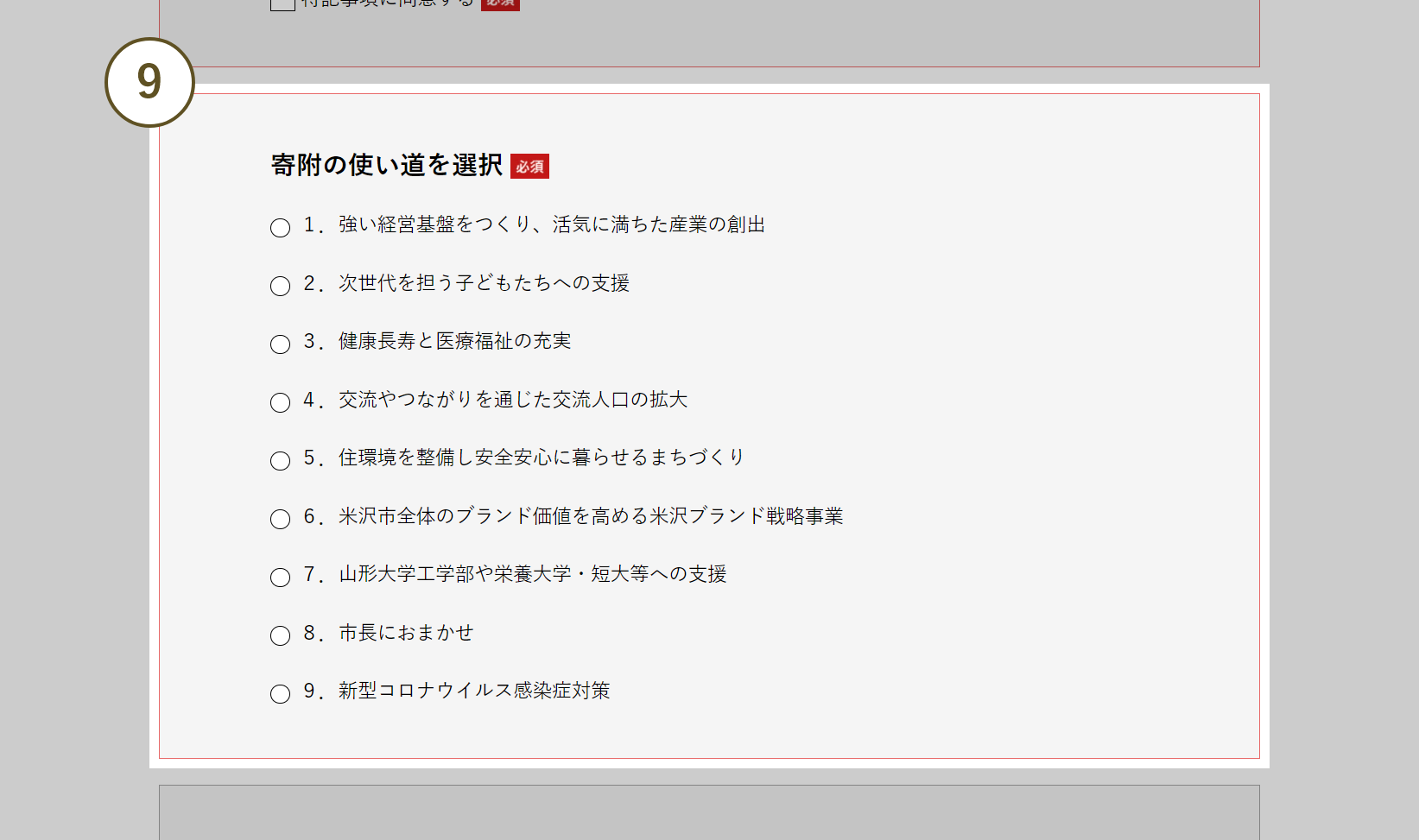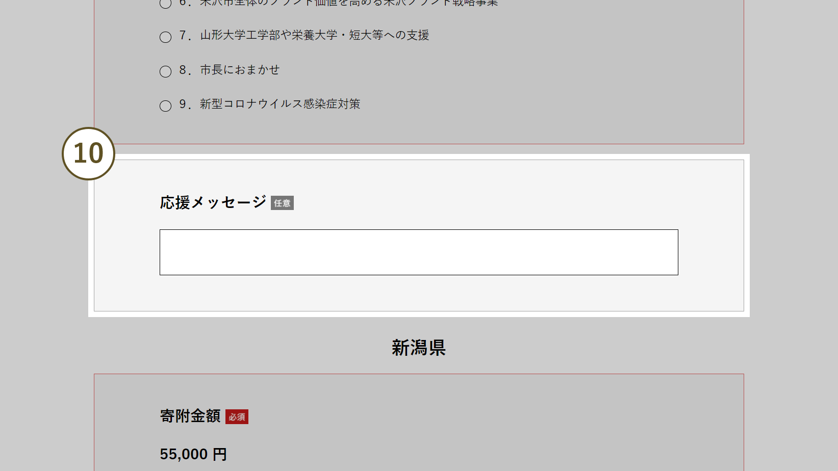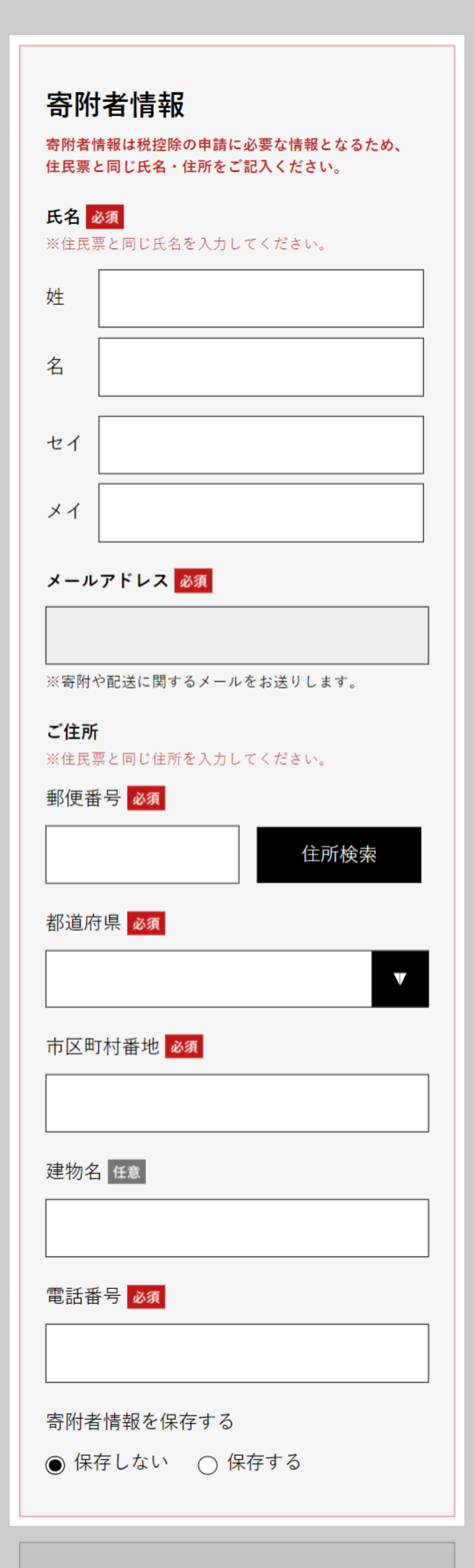 ※チェックが外れていると寄附申し込みされません。