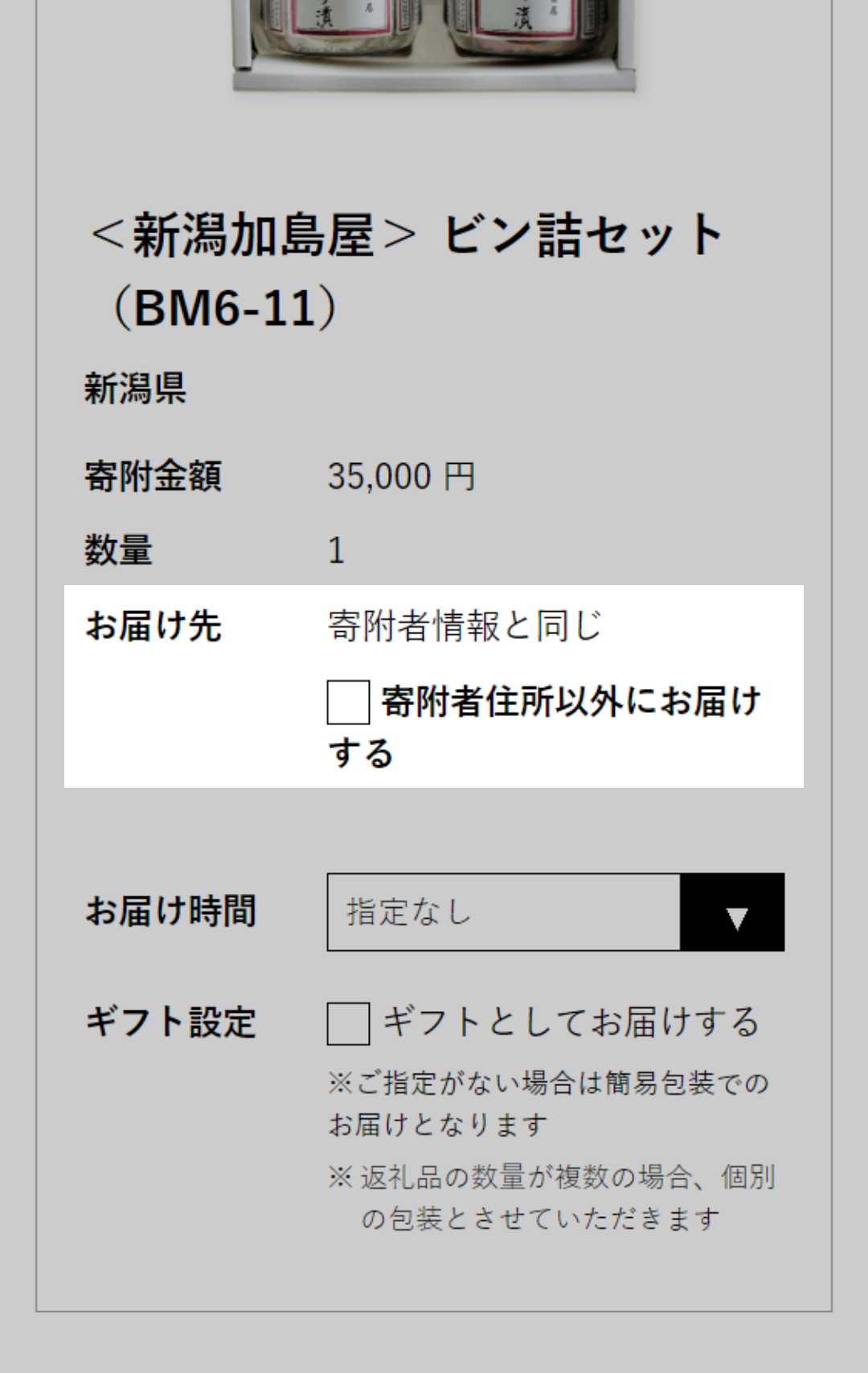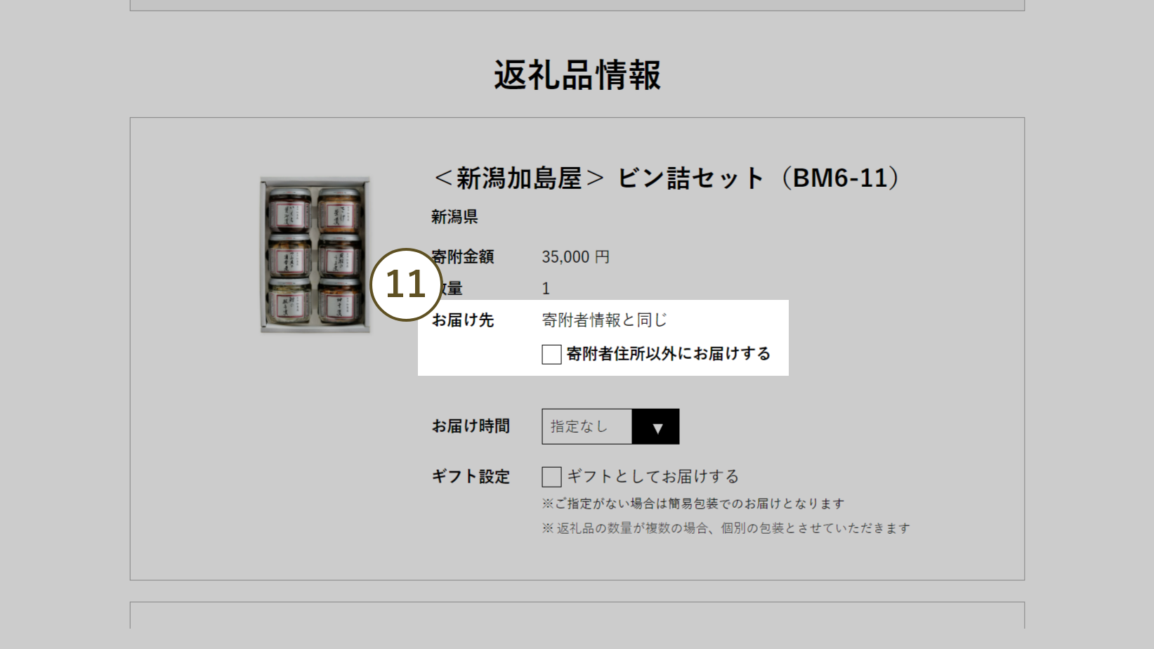返礼品のお届け設定を行います。