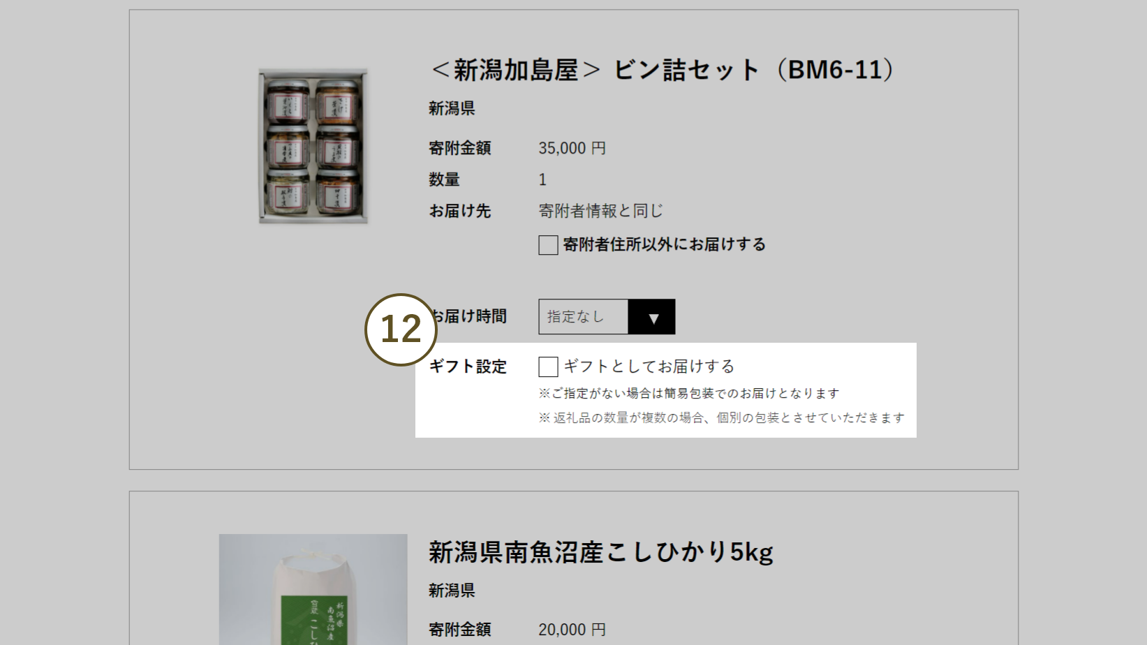 - 12 ギフト包装が指定できる場合にのみ表示されます。