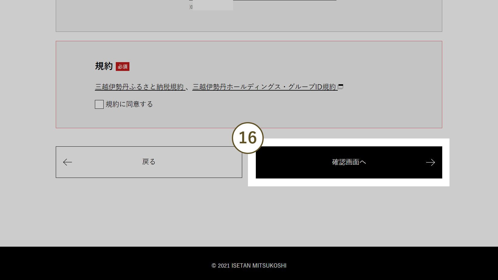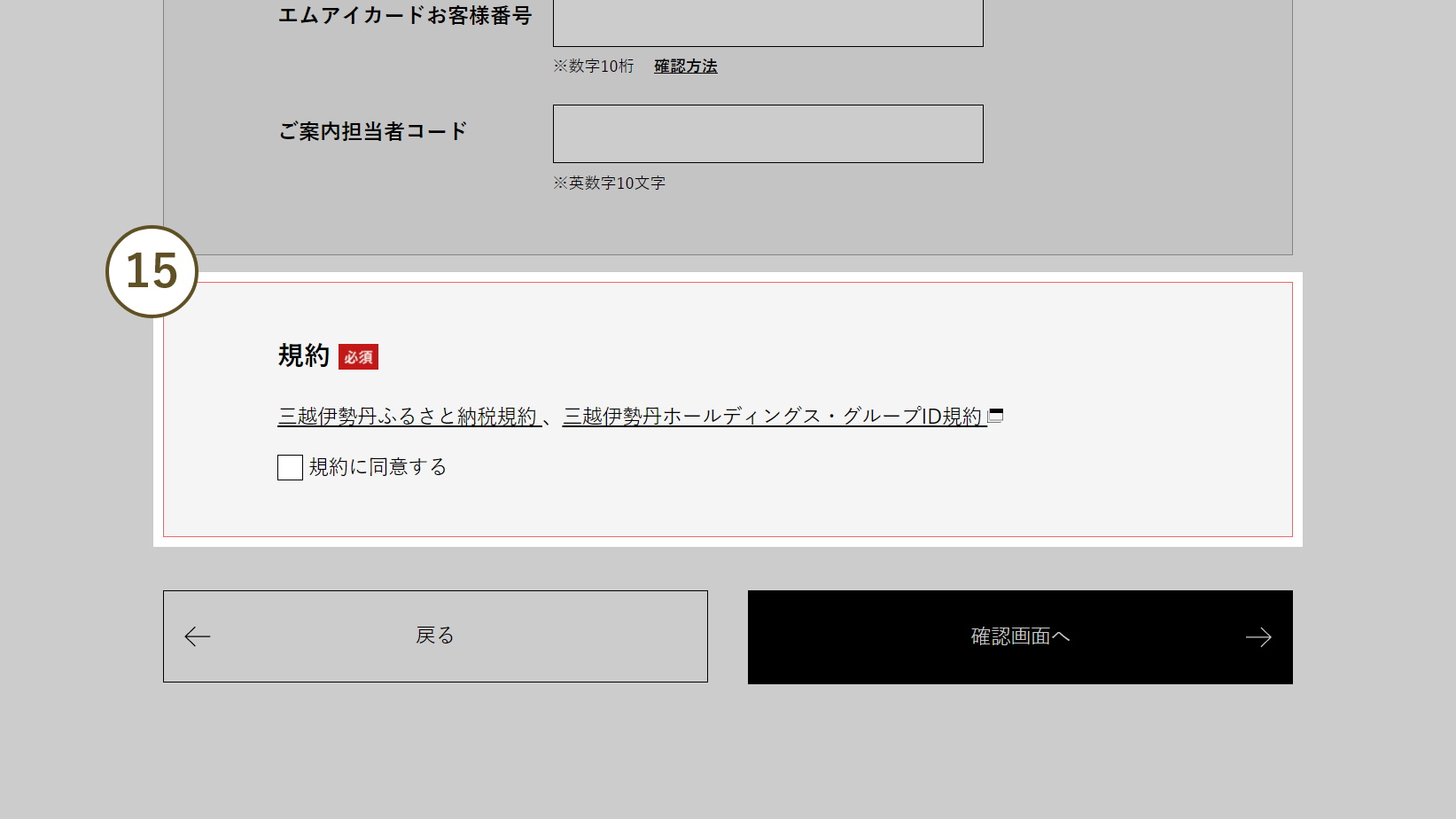 - 15 規約の内容をご確認の上、チェックボックスにチェックを入れてください。