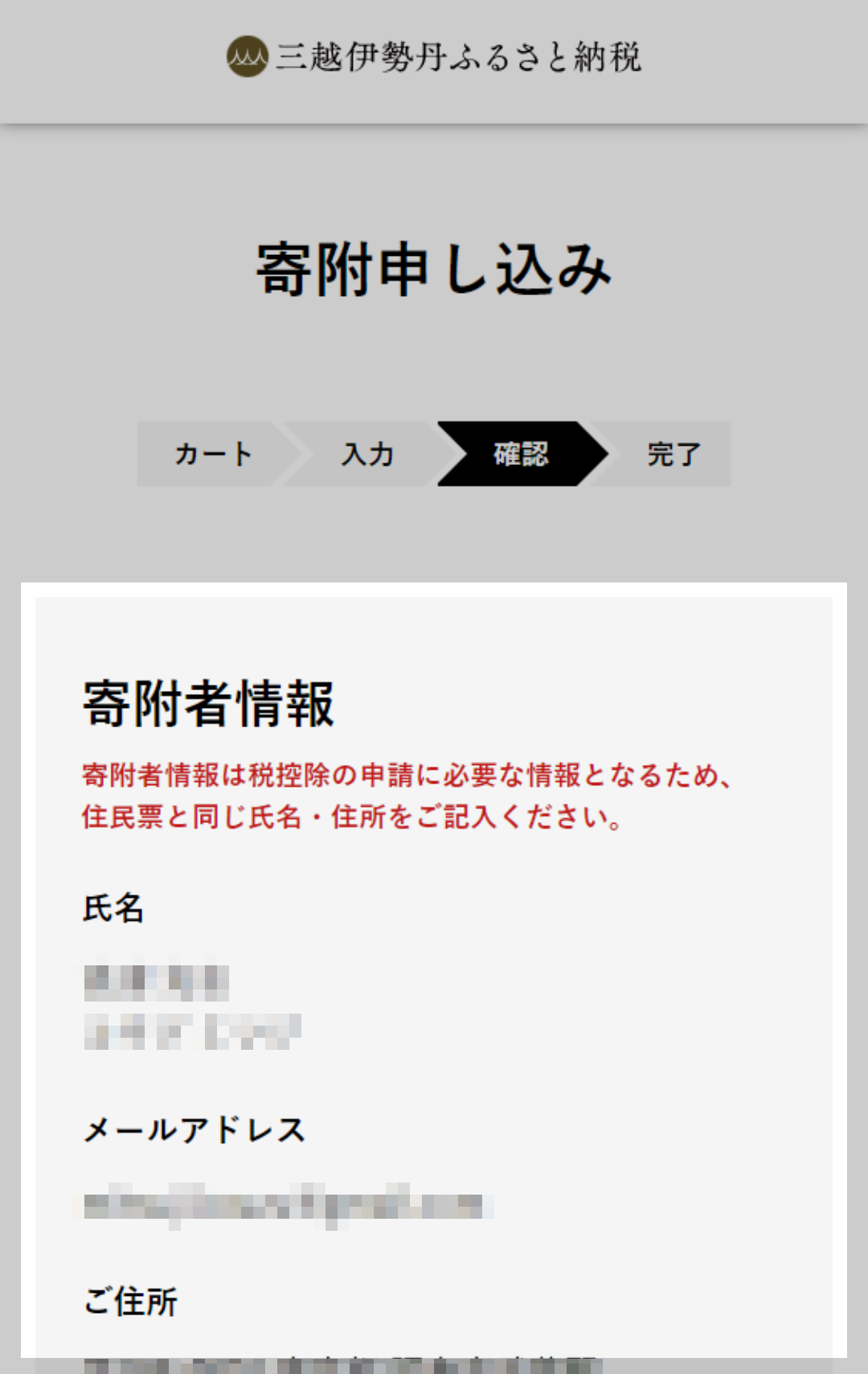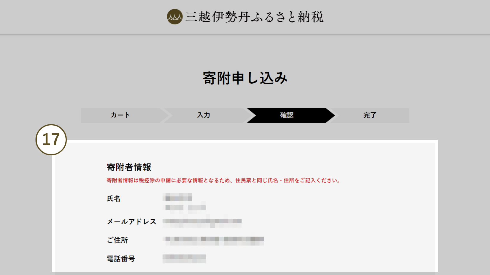 表示された内容でよろしければ「寄附を申し込む」をクリックしてください。