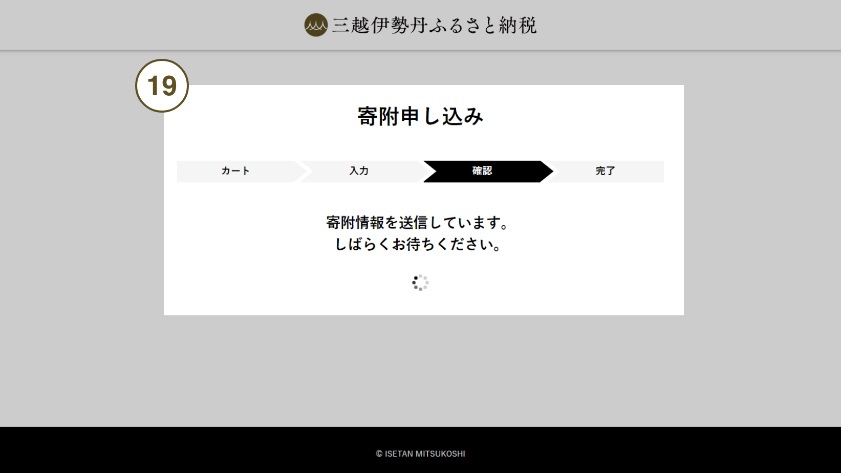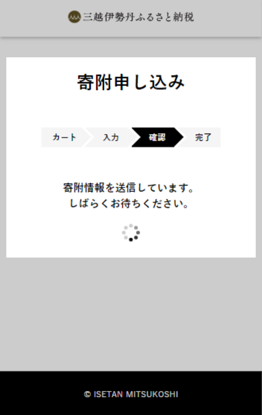 寄附情報送信中画面が表示されます。