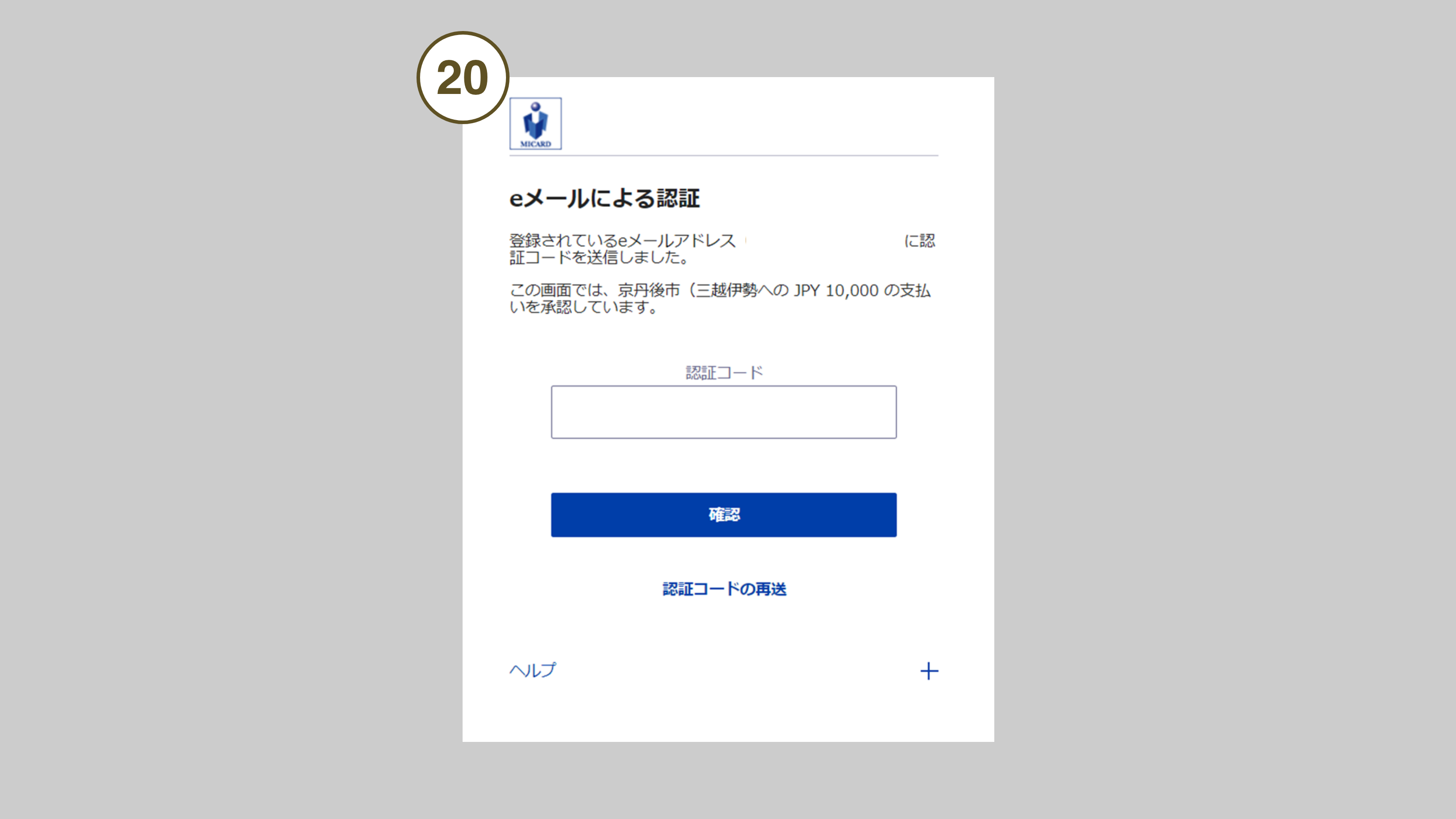 - 20 本人認証を必要とする場合のみ、クレジットカード会社が提供する本人認証画面が表示されます。認証方法はカード会社によって異なりますので、認証画面の案内に従い本人認証を行ってください。