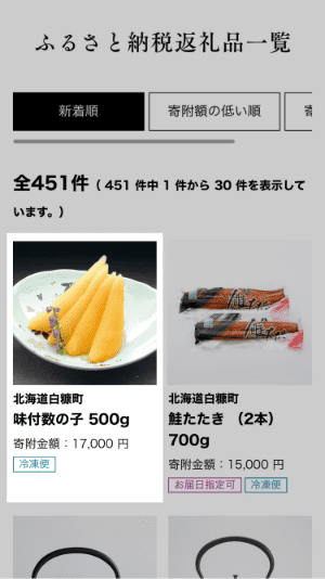 - 2 興味のある返礼品をクリックすると詳細が表示されます。