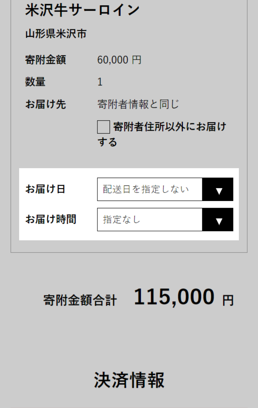 - 返礼品によっては配送日時をご指定いただけるものもございます。申込画面に表示される内容に沿ってご指定ください。