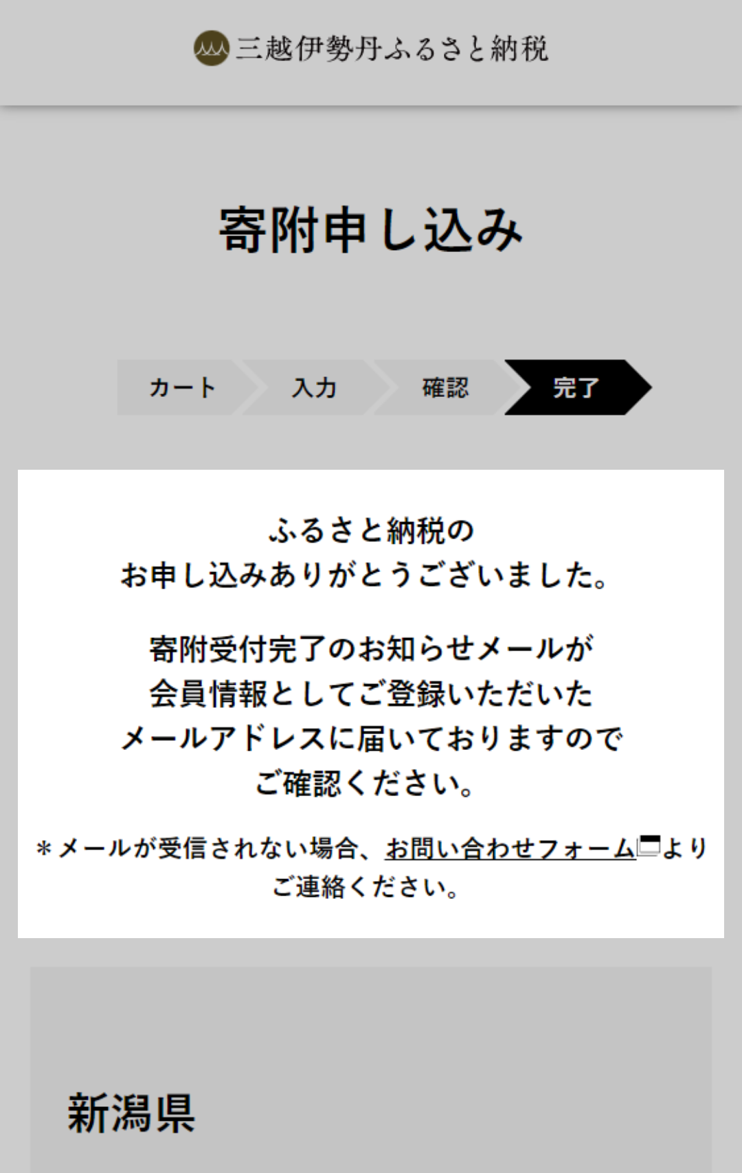 会員登録が完了し『三越伊勢丹ふるさと納税』のトップページに移動し、メールマガジン登録の確認が表示されます。