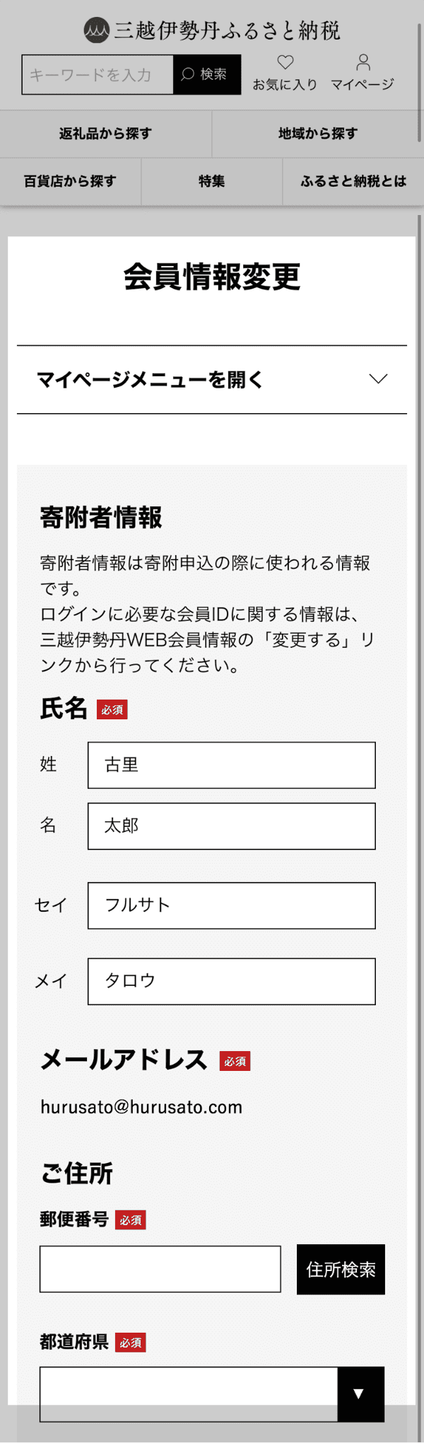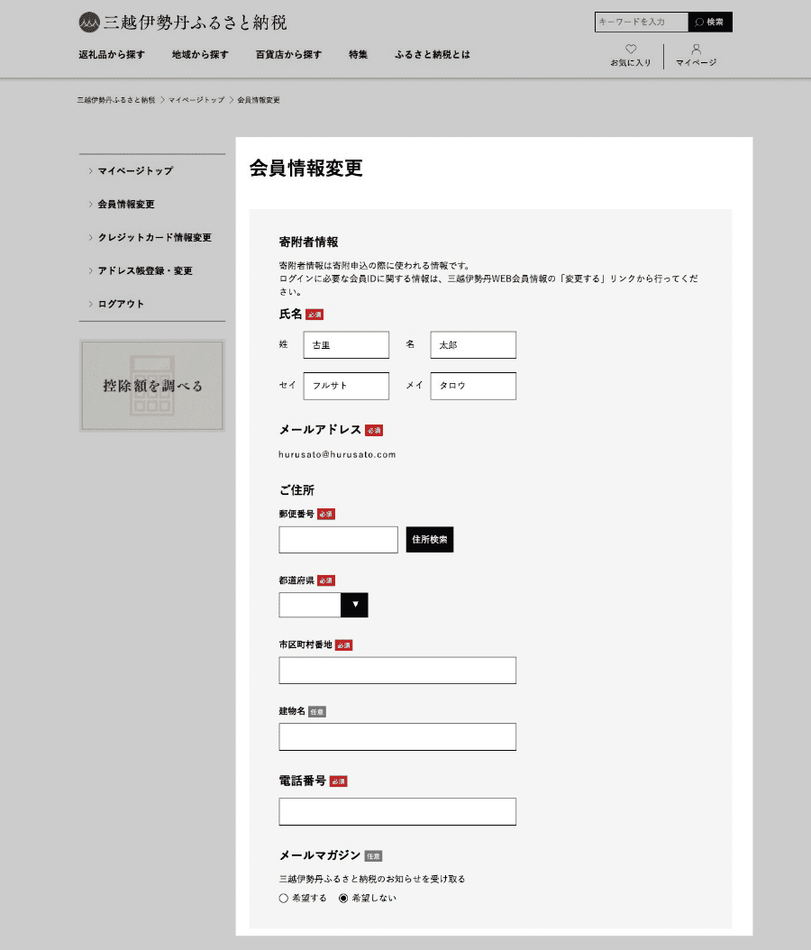 - 登録されている寄附者のメールアドレス、住所などを変更することができます。