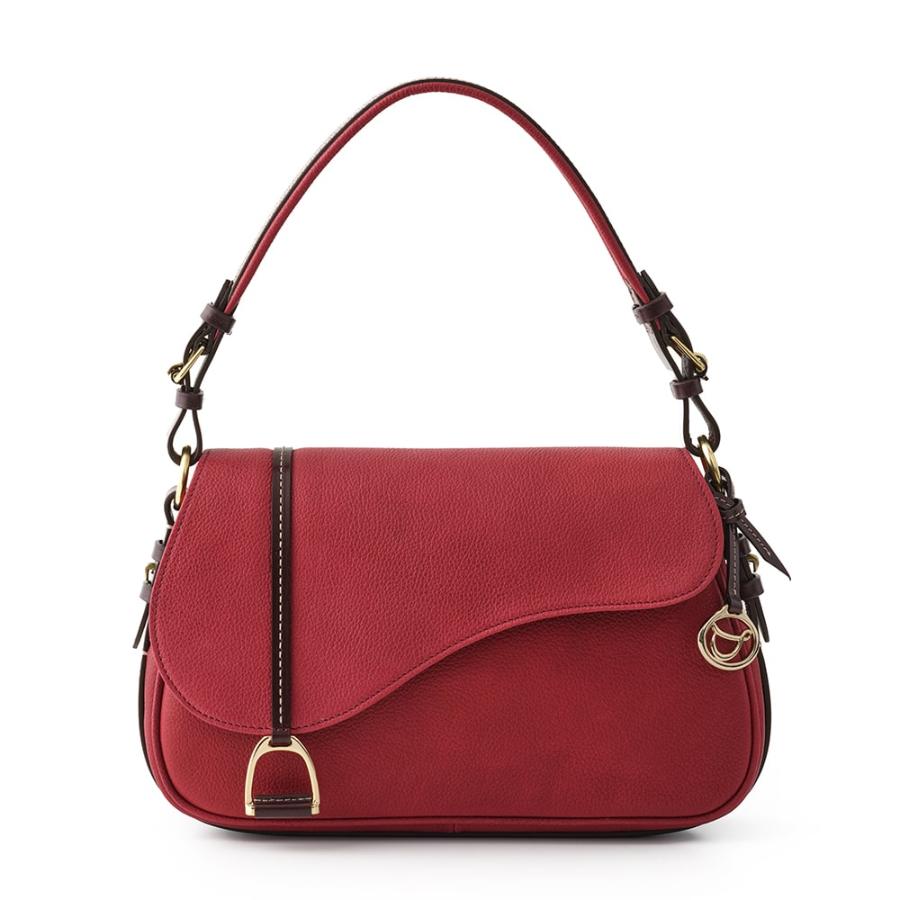 鞍の曲線美を生かした女性らしく優しいフォルムのサドルショルダー。あぶみモチーフのチャームがアクセントになります。内装は、上品で落ち着いた印象を添えるワインとブルー。バッグの中身が一目で分かりやすい色味を採用しました。