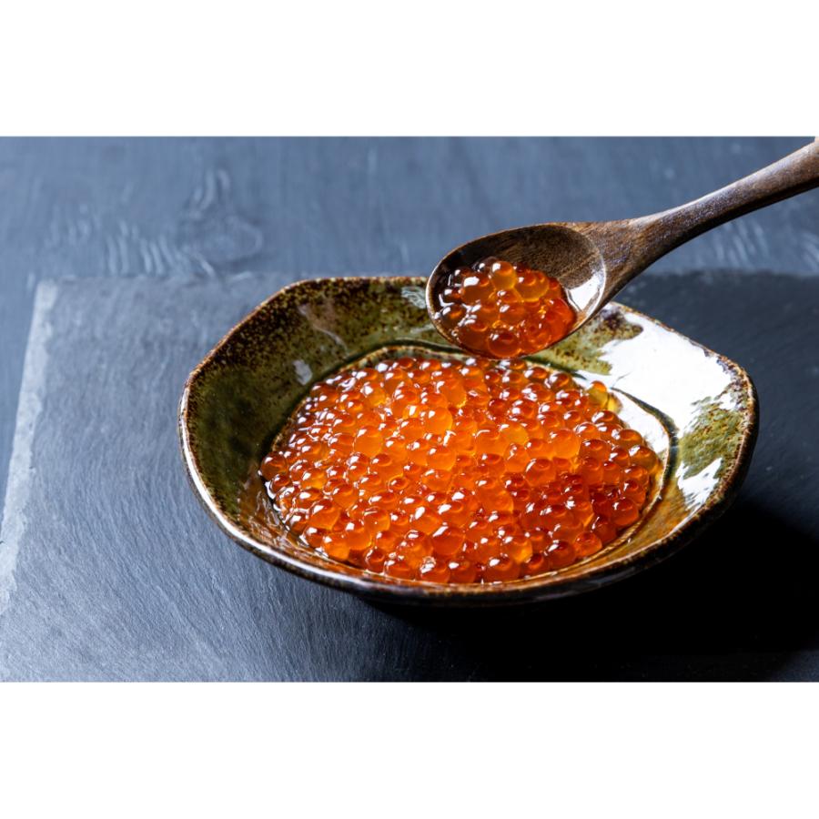 | 原材料 | 秋鮭卵(北海道産)、醤油、米発酵調味料、植物たん白加水分解物、還元水飴、味醂、魚介エキス、調味料(アミノ酸等)、(一部に小麦・大豆・いくら・サバを含む) |