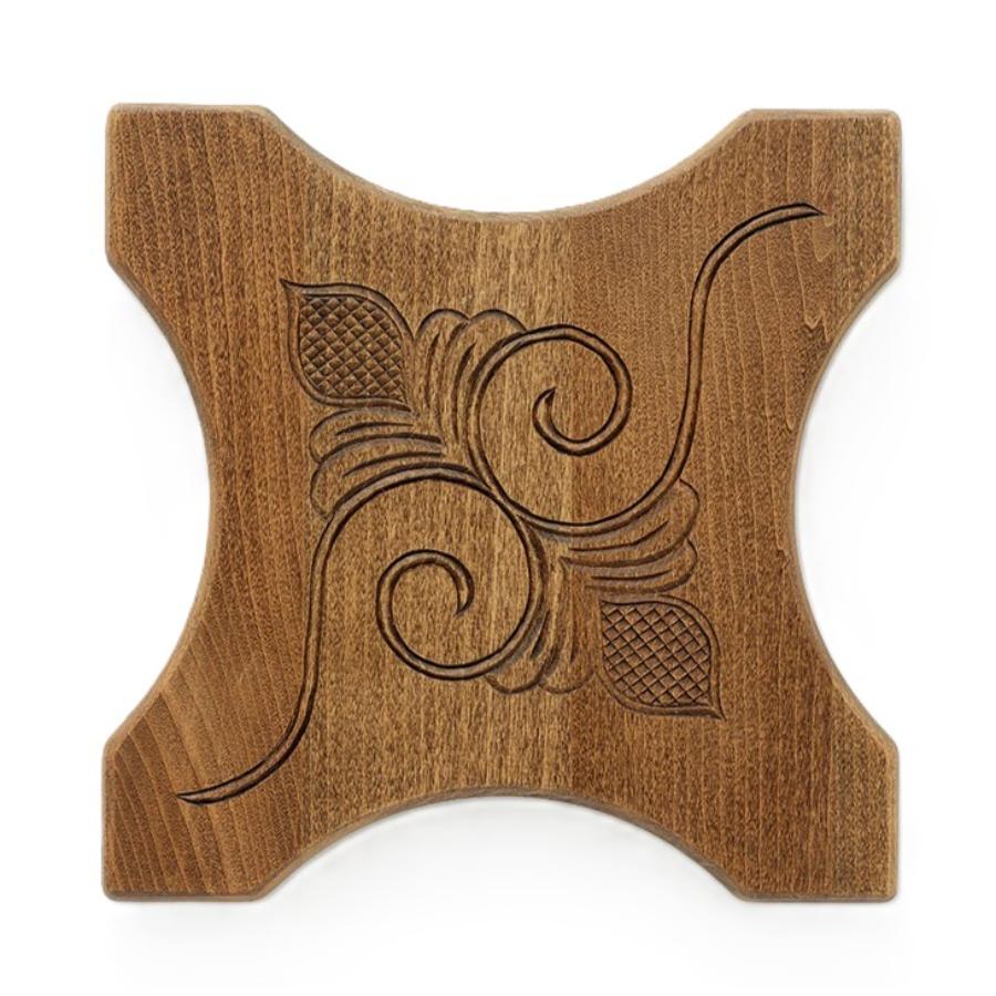 一つ一つ職人の手で丁寧に木彫りを施した鍋敷き。アイヌ文様の彫刻が食卓に華を添え、未使用時はキッチンのインテリアとしての美しい佇まいにもこだわりました。アイヌの伝統的な道具である「ヌイトサイェプ」という糸巻きを鍋敷きに見立ててリサイズし、テー ブルの上に置いても掴みやすい形状にしました。木彫りの手触りが感じられ、経年変化により味わい深く変化していく表情は、使うほどに愛着の沸く日常の道具となります。人間が作った道具であっても魂が宿ると考え大切に扱うアイヌのこころの豊かさを、ramguの道具を通じて感じていただけたら幸いです。