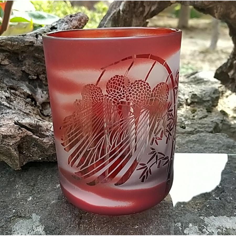 ガラスに砂を吹き付けて彫刻するサンドブラスト加工のオールドグラスです。