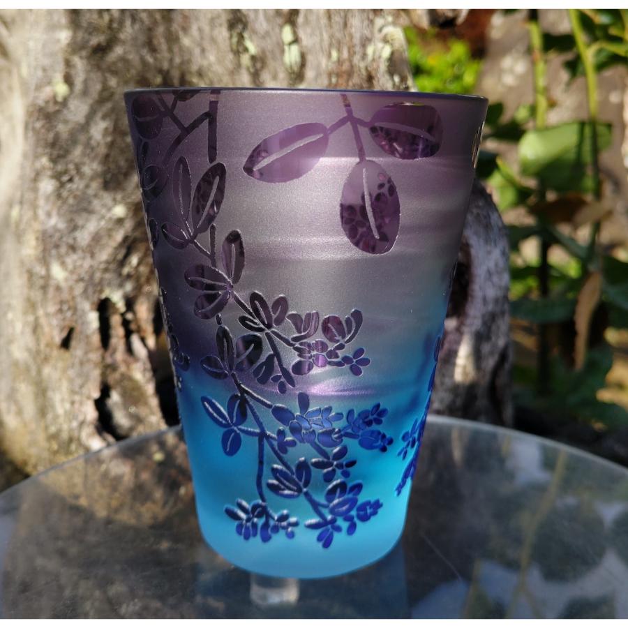 <HIROガラス工房>直タンブラー 仙台萩 ブルー地金紫