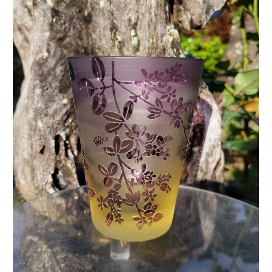 <HIROガラス工房>直タンブラー 仙台萩 アンバー地金紫