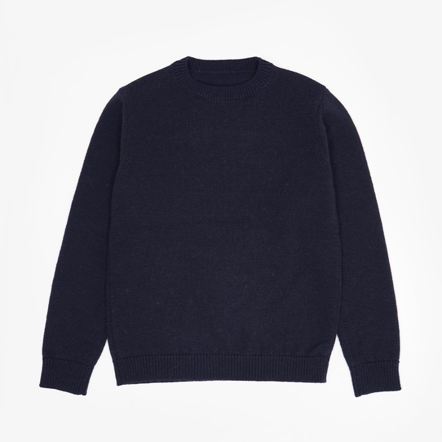 <satosenistandard>佐藤繊維ウール100%ミドルゲージ プレーンセーター/ダークブルー