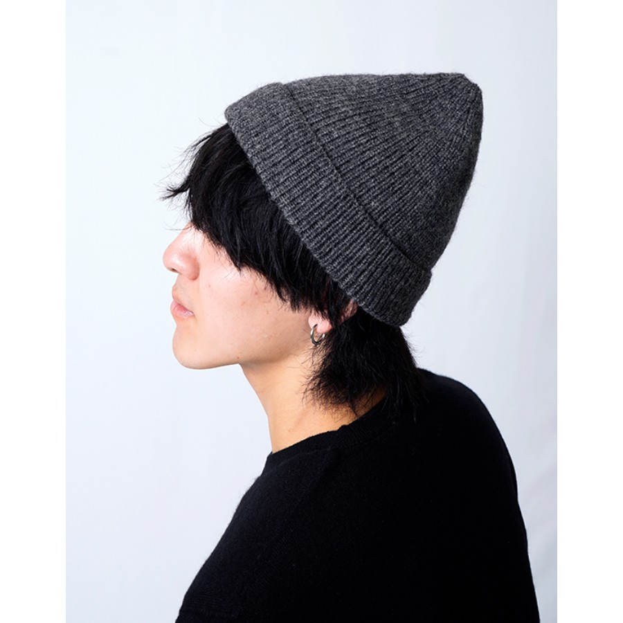 店頭でも人気の高かったセーターと同じ素材で出来た帽子です。小物が欲しいというリクエストに応えて生まれました。贈り物にも喜ばれる、飽きのこないデザインのニットキャップです。
