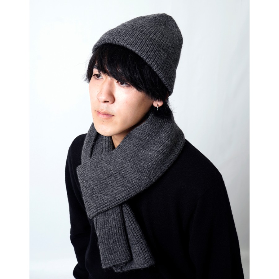 店頭でも人気の高かったセーターと同じ素材で出来た帽子です。小物が欲しいというリクエストに応えて生まれました。贈り物にも喜ばれる、飽きのこないオーソドックスなニットマフラーです。
