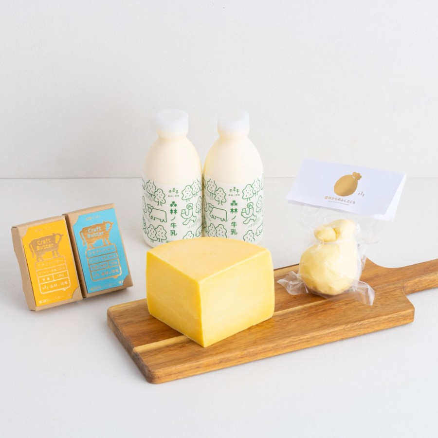 | 原材料 | ジャージーミルクのセミハードチーズ:生乳、食塩 森林ノ牛乳:生乳 森林からのふくぶくろ カチョカバロチーズ:生乳、食塩 発酵バター(有塩):生乳、食塩 発酵バター(食塩不使用):生乳 |