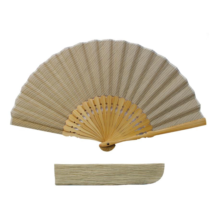 <IONO>小千谷縮 扇子 縞 ベージュ