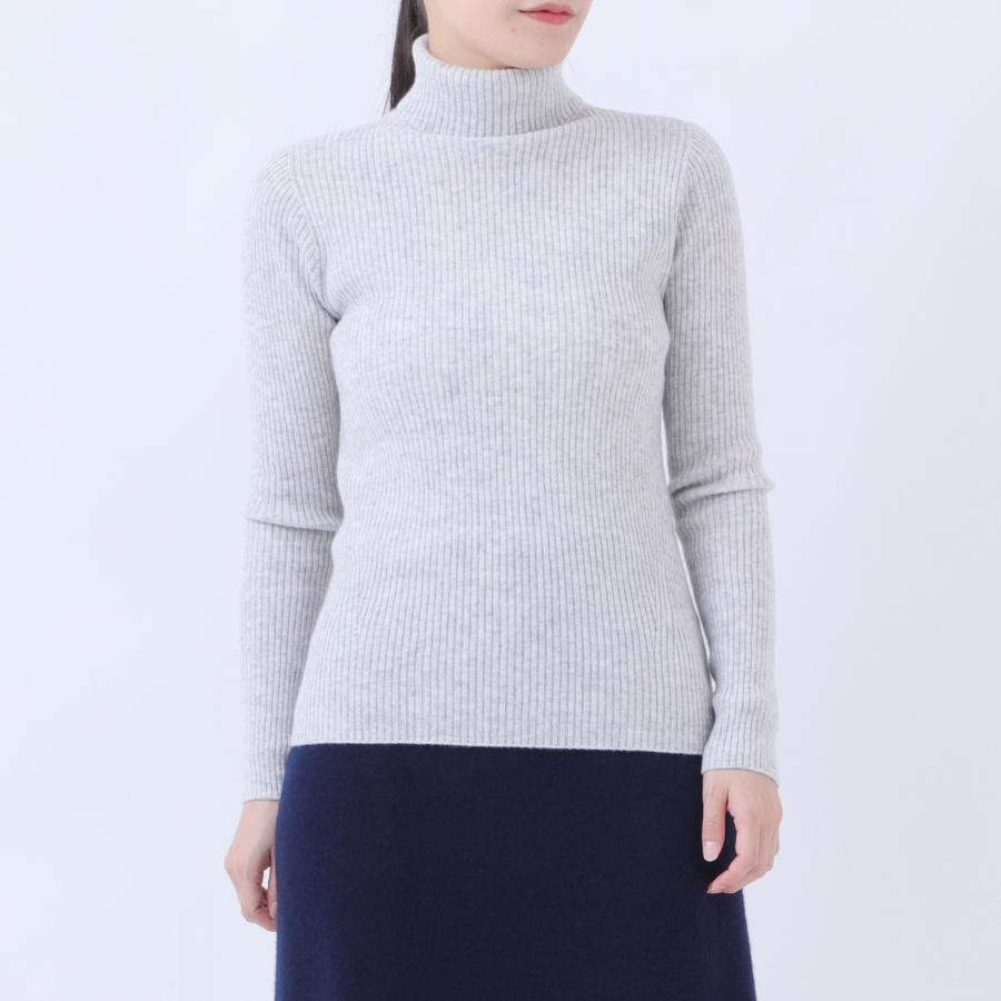 カシミヤ100%のプレミアムな2×2リブタートルニットです。ホールガーメント製なので、縫い目のない滑らかな仕上がりで、つっぱり感がなく優しい着心地です。やわらかく暖かい程よいフィット感で体のラインを美しく引き立て、インナーとしても重宝する長く愛用できる一着です。