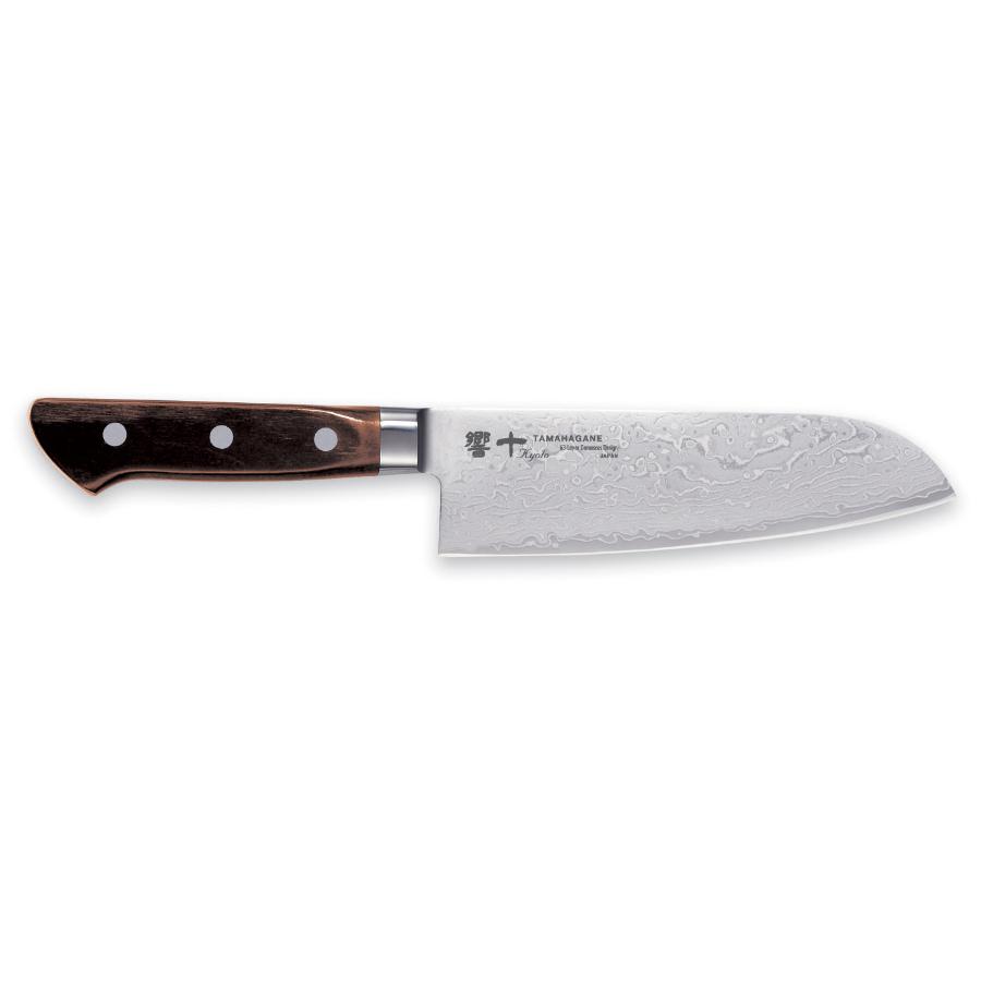 鉄、鋼などの異種金属を幾重にも重ね合わせて鍛造し模様を浮かび上がらせた鋼材、ダマスカス鋼を使用、何層にも重ね鍛造することによって鍛え上げられるため、切れ味もよく、耐久性に優れ、錆びにくいです。