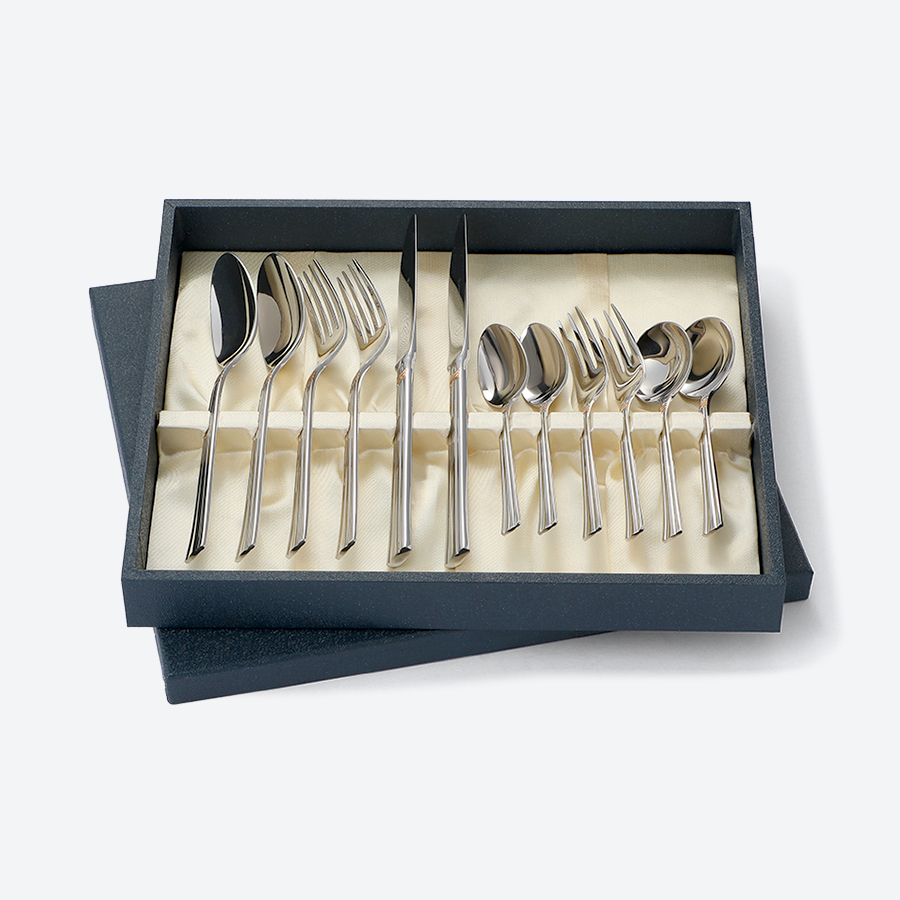 | 内容量 | デザートスプーン、デザートフォーク、デザートナイフ、 ティースプーン、ケーキフォーク、ブイヨンスプーン 各2 |