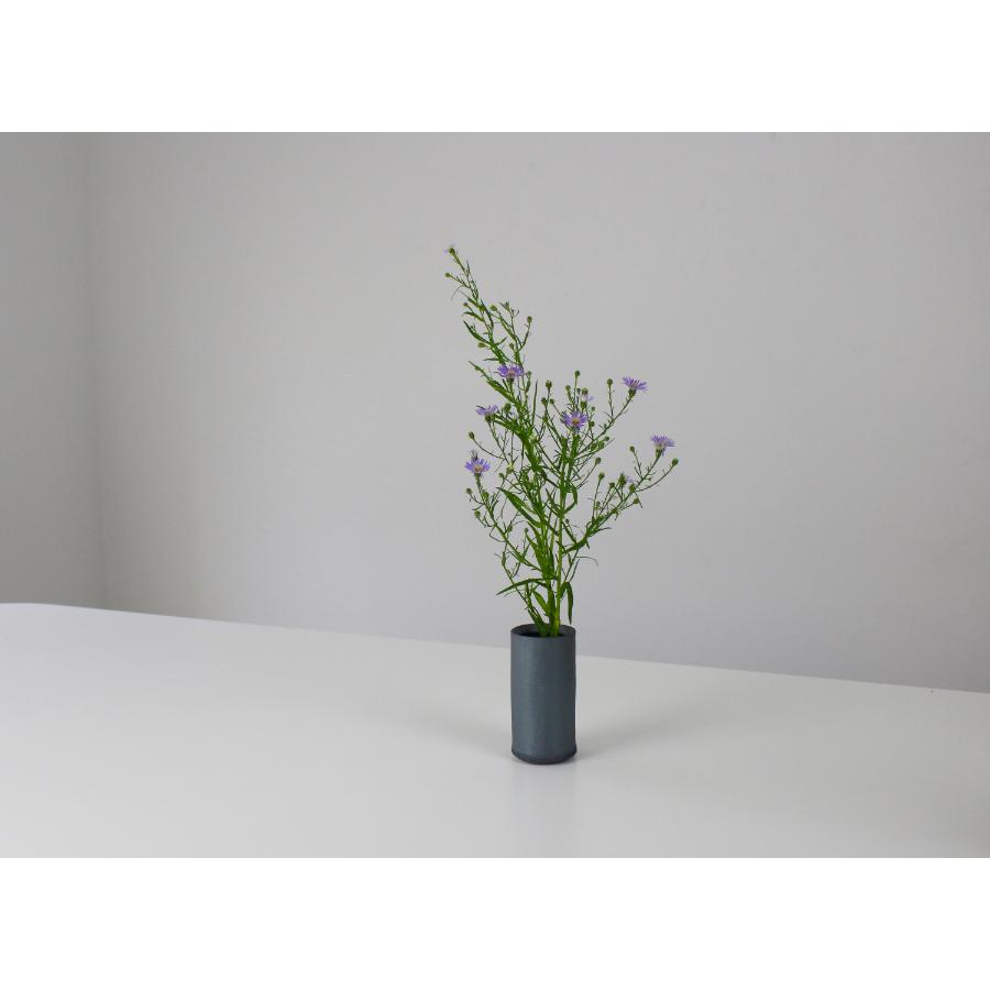 インテリアブランド「MYK(マイケイ)」。筒の内底に小さな剣山を配置。縁にもたれかかることなく、芯で垂直に生けることもできます。安田瓦特有の凹凸の表面はその美しい輝きと、手に馴染むグリップ性、特有の適度な重さから生じる安定感もあります。