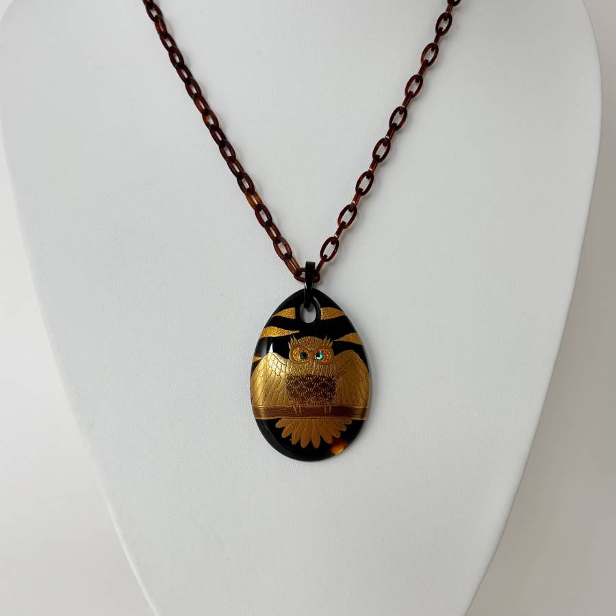 <うるしアートはりや>ふくろう蒔絵べっ甲ペンダント