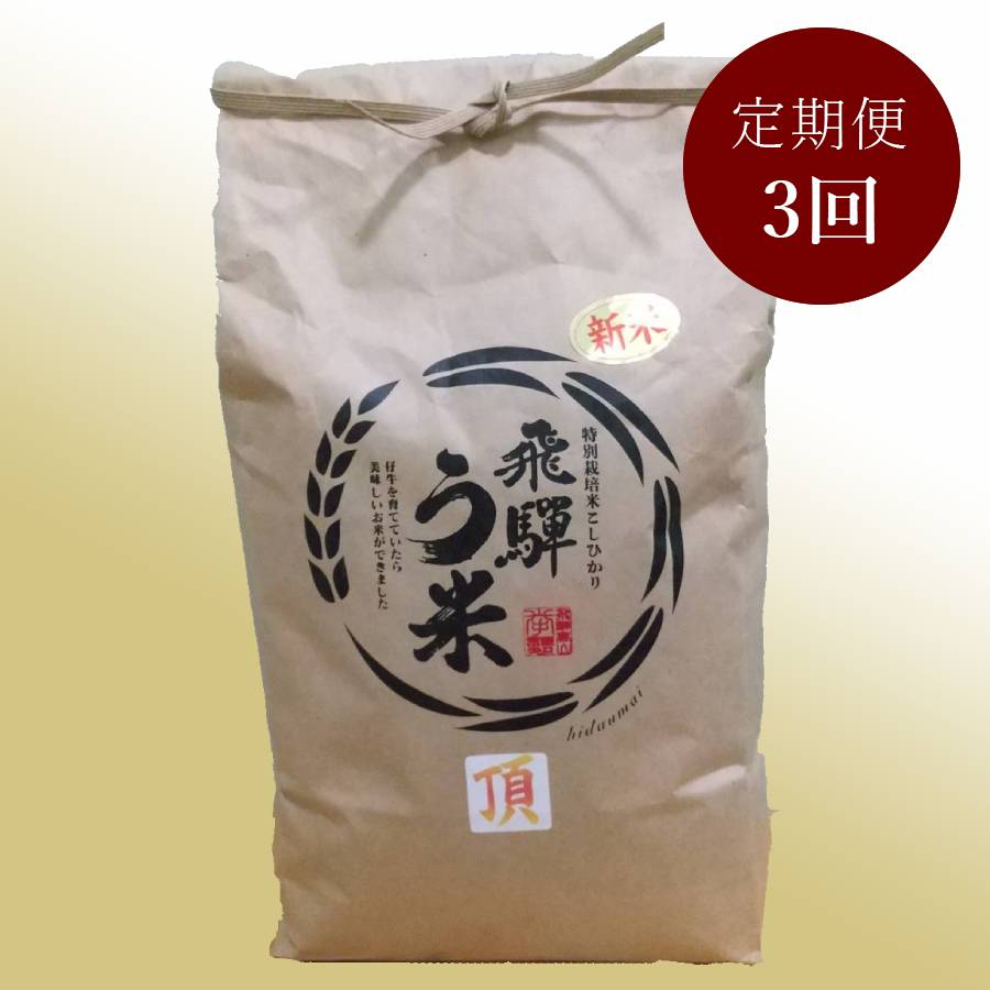 <拳>食味コンクール3年連続『特別優秀賞』特別栽培米「こしひかり」飛騨う米5kg【3ヵ月定期便】11月開始