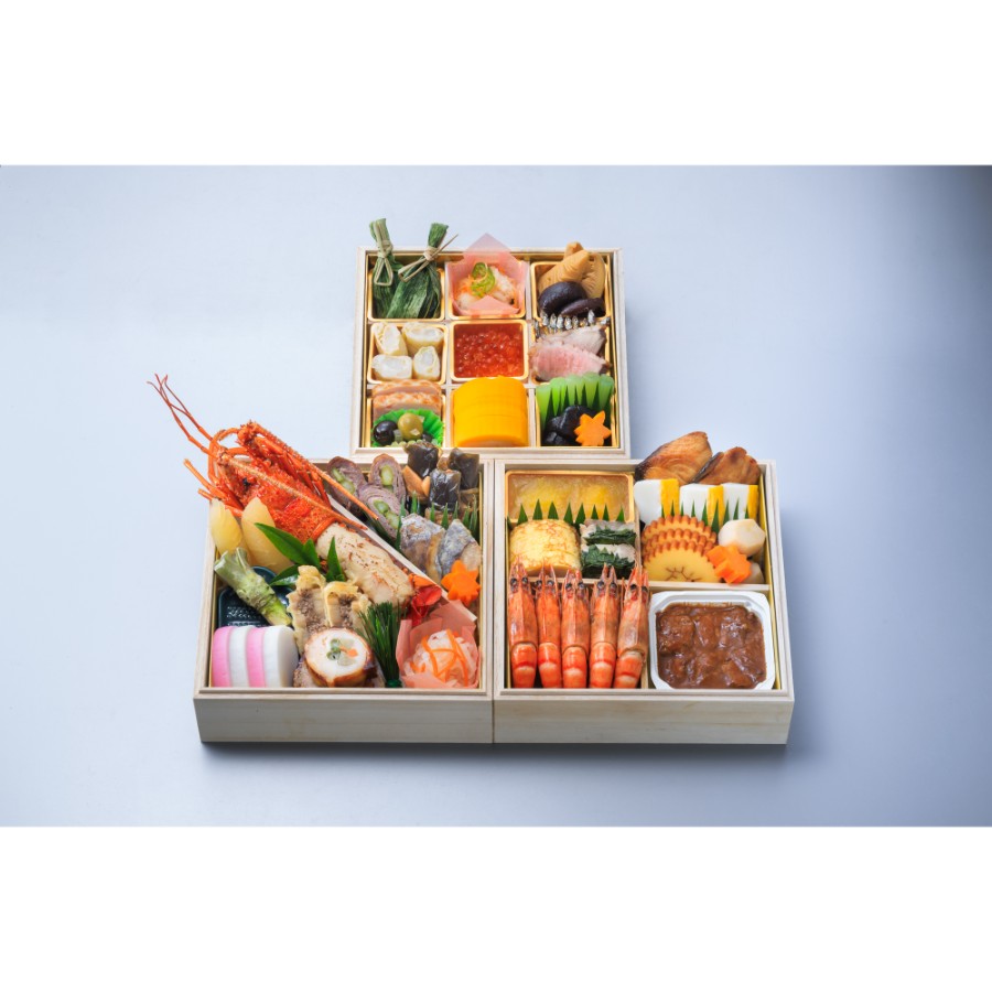 | 内容量 | 栗きんとん(国内製造)、海老甘煮、ビーフシチュー、紅白蒲鉾、鮪昆布巻き、伊勢海老ホワイトソース焼き、あしたか牛アスパラ巻き、伊達巻き、錦玉子、海老しんじょう巻、鶏三色巻、あしたか牛蓮根挟み揚げ、笹団子、数の子、鰤照り焼、イカ黄身焼、なます、白身魚西京焼き、里芋煮、筍煮、蒟蒻煮、海老入り湯葉巻き、お多福豆、鶏日光焼、ティスティーチキン、ホタテのマリネ、蕗煮、いくら醤油漬、合鴨ロース、椎茸煮、生山葵、オリーブマリネ、田作り、紅葉人参 |