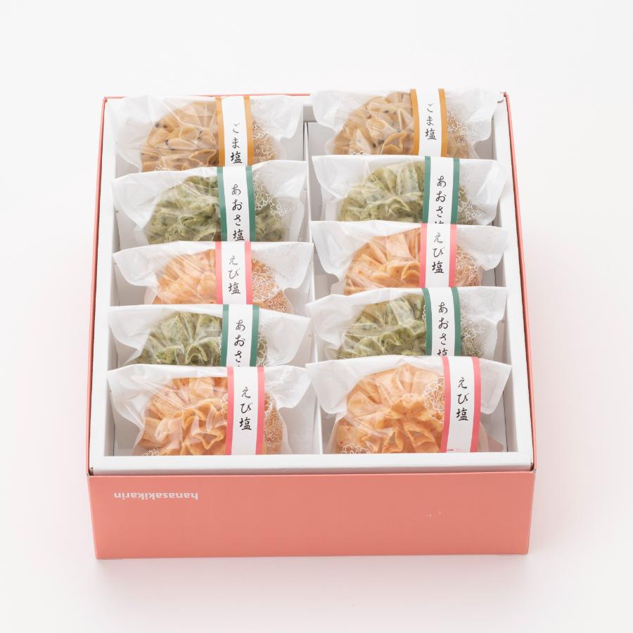<賀門>「塩かりん」3種詰合せ (ごま塩・あおさ塩・えび塩)計10個