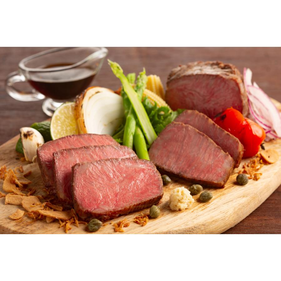 松阪牛の旨味がギュッとつまったローストビーフです。お肉本来の味を活かすため、味付は赤ワインとシーズニングでシンプルにしました。表面を高温で焼き上げ、真空低温調理で仕上げました。松阪牛の赤身の旨味と脂身の旨味を両方味わうことのできるローストビーフをお届けいたします。