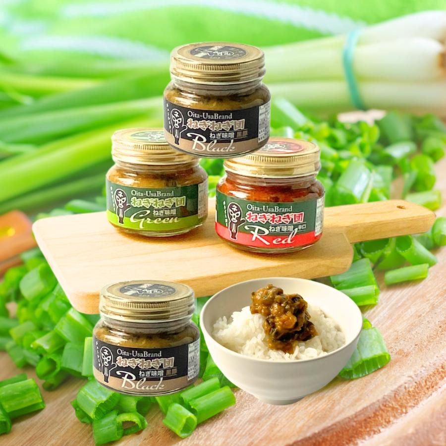 | 原材料 | ねぎ味噌(赤):味噌(国内製造)、ネギ(大分県産)、一味唐辛子、砂糖、発酵調味料、米発酵調味料、ゴマ、調味料(アミノ酸等)、(原材料の一部に小麦、大豆を含む) ねぎ味噌(緑):味噌(国内製造)、ネギ(大分県産)、砂糖、発酵調味料、米発酵調味料、ゴマ、調味料(アミノ酸等)、(原材料の一部に小麦、大豆を含む) ねぎ味噌(黒):味噌(国内製造)、ネギ(大分県産)、豚肉、砂糖、発酵調味料、米発酵調味料、ゴマ、調味料(アミノ酸等)、(原材料の一部に小麦、大豆を含む) |